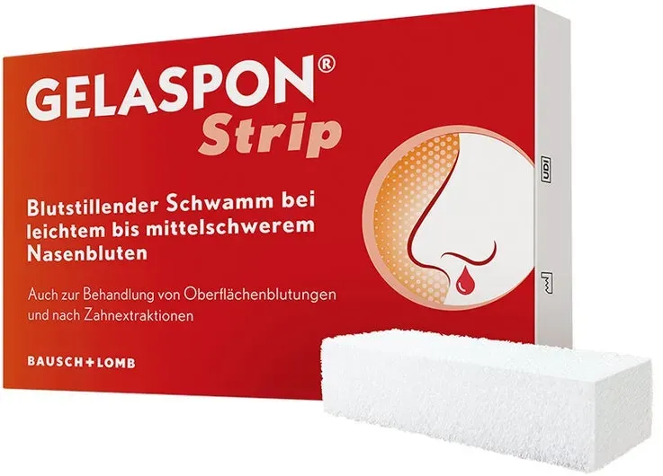 3.06 / 1 Stück - Kategorie: Arzneimittel - Bausch + Lomb - GTIN:4030571007814 - PZN:17940575 - ? Leicht anzuwenden und zu entfernen ? Hilft die Blutung zu stoppen ? Gut gewebeverträglich & pH-neutral ? Gut geeignet, um Nasenbluten zu stoppen Hohes Saugvermögen Die Funktionsweise von Gelaspon beruht auf seiner feinporigen, porösen Schwammstruktur. Dadurch hat Gelaspon ein hohes Saugvermögen für Blut und Wundsekrete. Gelaspon kann zur Blutstillung bei leichtem bis mittelschwerem Nasenbluten, zur Versorgung oberflächlicher Wunden und nach einer Zahnextraktion verwendet werden. Wundauflage zur Blutstillung und Wundversorgung Gelaspon ist ein steriler, resorbierbarer Gelatineschwamm zur Versorgung von kleinen oberflächlichen Wunden. Seine feinporige Struktur aktiviert die Blutgerinnung. Gelaspon Strips haben einen neutralen pH-Wert und sind gut gewebeverträglich. Die steril verpackten Gelaspon Strips lassen sich rückstandslos von oberflächlichen Wunden entfernen. ANWENDUNGSEMPFEHLUNG: ? Blutstillung bei Nasenbluten: Einen Gelaspon Strip in das betroffene Nasenloch einführen. Zur besseren Einführung kann der Strip leicht zusammengedrückt werden. ? Sollte es beim Nasenbluten auch nach Verwendung eines zweiten Gelaspon Strip nicht zum Stoppen der Blutung kommen, ist ein Arzt aufzusuchen. ? Versorgung von Wunden: Bei trockenen Wunden empfiehlt es sich, den Gelaspon Strip angefeuchtet, zur Versorgung feuchter Wunden trocken zu verwenden. ? Mit einer sterilen Schere kann ein Gelaspon ... ![]() ![]() Bausch + Lomb Gelaspon Strip zur Blutstillung und Wundversorgung