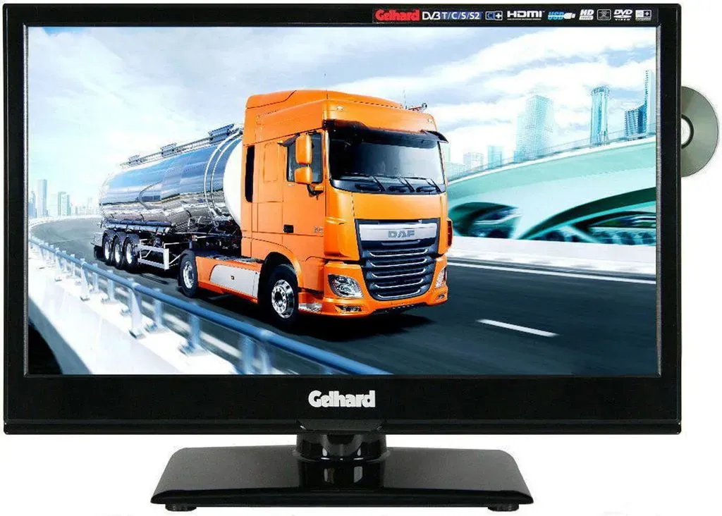 EEK: E - Kategorie: Fernseher - Gelhard - GTIN:4015625213953 - Gelhard GTV1682PVR Widescreen LED-TV 15,6' Zoll 40cm mit DVD Triple-Tuner und PVR-Funktion Der kleine mit der Vollausstattung. Gelhard GTV1682PVR ein Multifunktionsgerät der Extraklasse, welches nicht nur durch seine exzellente Bildqualität sondern auch durch seine tolle Ausstattung besticht. Vier Digitaltuner DVB-S, DVB-S2, DVB-C, DVB-T und DVB-T2 ermöglichen Ihnen den Empfang digitaler Kanäle per Satellit, Kabel oder auch von digital terrestrischer Basis. DVB-T2 nachneuen HD Standards (H.265 HEVC). Der 5V+ Eingang für Aktivantenne versorgt Ihre aktive DVB-T Antenne direkt mit Strom, so dass keine andere Stromversorgung benötigt wird. Der eingebaute DVD Player, ist kompatibel mit allen gängigen Formaten. Das Gerät hat einen Multispannungsanschluss, welcher Spannungen von 11Volt - 24Volt verarbeitet. Er ist somit auch geschützt vor den üblichen Spannungsschwankungen die in einen Fahrzeug auftreten können. Das Gerät kann ohne zusätzlichen Wandler an 12-24 Volt betreiben werden und ist somit ideal für den Einsatz z.B. in Ihrem Wohnmobil / Wohnwagen / Boot / LKW geeignet. über den USB Anschluss können Sie Audio- Video- und Bilddateien von Stick oder Festplatte wiedergeben. Mit dem vorhandenen VGA Anschluss ist das Gerät auch zusätzlich als PC Monitor nutzbar.Bildschirm:LED Bildschirmdiagonale 40 cm (15,6 Zoll)Bildwiederholungsfrequenz (Hz) 50LED-Technologie Edge-LEDBildauflösung in Pixel 1920 x 1080 ... ![]() ![]() Gelhard GTV2226 - LED Smart eBay TV WebOS und Bluetooth DVB-S2/C/T2 für 12V u. 230Volt