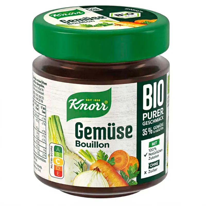 Zustand: Neu - 13,50 € / kg - Brühe & Fond - Knorr Unilever Germany - - EAN: 8720182932068 - Knorr Gemüse Bouillon im praktischen Glas ergibt 7 Liter leckere Bouillon für zahlreiche Gerichte Vegane Gemüsebouillon mit vollem Geschmack, natürlichen Zutaten und aromatischen Kräutern Knorr Gemüse Bouillon ist ideal zum Würzen, Abschmecken und Verfeinern und verfügt über den Nutri-Score B Auch für vegane und vegetarische Gerichte ist die Knorr Gemüse Bouillon hervorragend geeignet Eine leckere, feine Gemüsebrühe mit vollem Geschmack, die im Handumdrehen gelingt Gemüse Bouillon von Knorr mit natürlichen Zutaten, ohne geschmacksverstärkende Zusatzstoffe, Farbstoffe und ohne Konservierungsstoffe lt. Gesetz - bei Amazon.de ![]() ![]() Knorr Bio-Gemüsebouillon 5,5 l