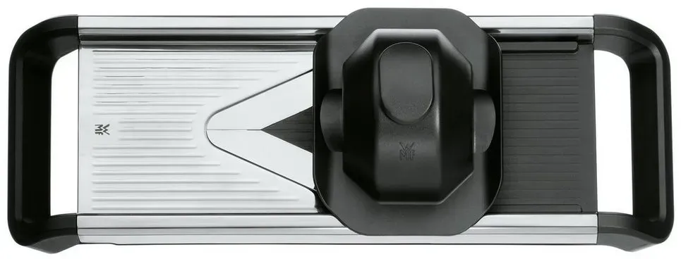 lieferbar-in 2-3 Werktagen bei dirWMF Gemüsehobel Top Tools, Cromargan Edelstahl rostfrei 18/10, (1x Gemüsehobel (37 x 12,5 cm), 3x Hobeleinsatz (1x mit glatter Oberfläche, 1x grobe Zacken, 1x feine Zacken), 1x Fingerschutz, 1x Aufbewahrungsbox für 2 Hobeleinsätze, 1x Messerklingen-Stahl, 6-St) schwarz