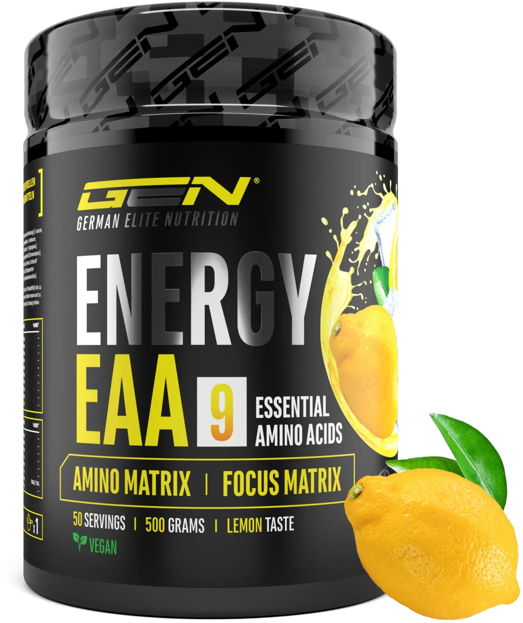 3 Werktage in_stock - Pre-Workouts Fitness Abnehmen,Aminosäuren,EAA Vitamine & Ergänzungen - EAN:4260601198377 - GEN Energy EAA - Deine Alternative zum Pre-Workout-Booster Stell dir vor, du betrittst das Gym mit voller Energie, dein Fokus ist messerscharf, und dein Körper ist bereit, alles zu geben. Kein Zittern, kein Crash - nur pure Leistungsbereitschaft. Das ist GEN Energy EAA, die perfekte Mischung aus essentiellen Aminosäuren und einem Hauch von Energie, die dich bei jedem Training unterstützt. Warum GEN Energy EAA? GEN Energy EAA wurde speziell für all jene entwickelt, die eine Alternative zu herkömmlichen Pre-Workout-Boostern suchen. Mit einer Kombination aus 9 essentiellen Aminosäuren und einer innovativen Focus-Matrix hilft dir unser Produkt, deine Ziele zu erreichen - ohne unnötige Füllstoffe oder Zuckerzusätze. Für wen ist GEN Energy EAA geeignet? Fitness-Enthusiasten: Perfekt für alle, die sich auf Muskelregeneration und Nährstoffversorgung konzentrieren möchten. Sportler mit klarem Fokus: Dank der Focus-Matrix mit Koffein und Taurin bleibst du auch in langen Trainingseinheiten mental stark. Bewusste Genießer: Vegan, glutenfrei und ohne Zucker - ideal für jeden Lebensstil. Was macht GEN Energy EAA einzigartig? Enthält 9 essentielle Aminosäuren (EAAs) wie L-Leucin, L-Isoleucin und L-Valin, die dein Körper benötigt, um optimal zu funktionieren. Innovative Focus-Matrix mit Koffein, Taurin und Guarana-Extrakt für zusätzliche Energie und Konzentration. Vitamin B6 ... Der German Elite Nutrition EAA Energy Mix in Lemon ist ideal für alle, die während des Trainings zusätzliche Energie benötigen. ![]() ![]() German Elite Nutrition EAA Energy Mix Lemon Drink 500 g