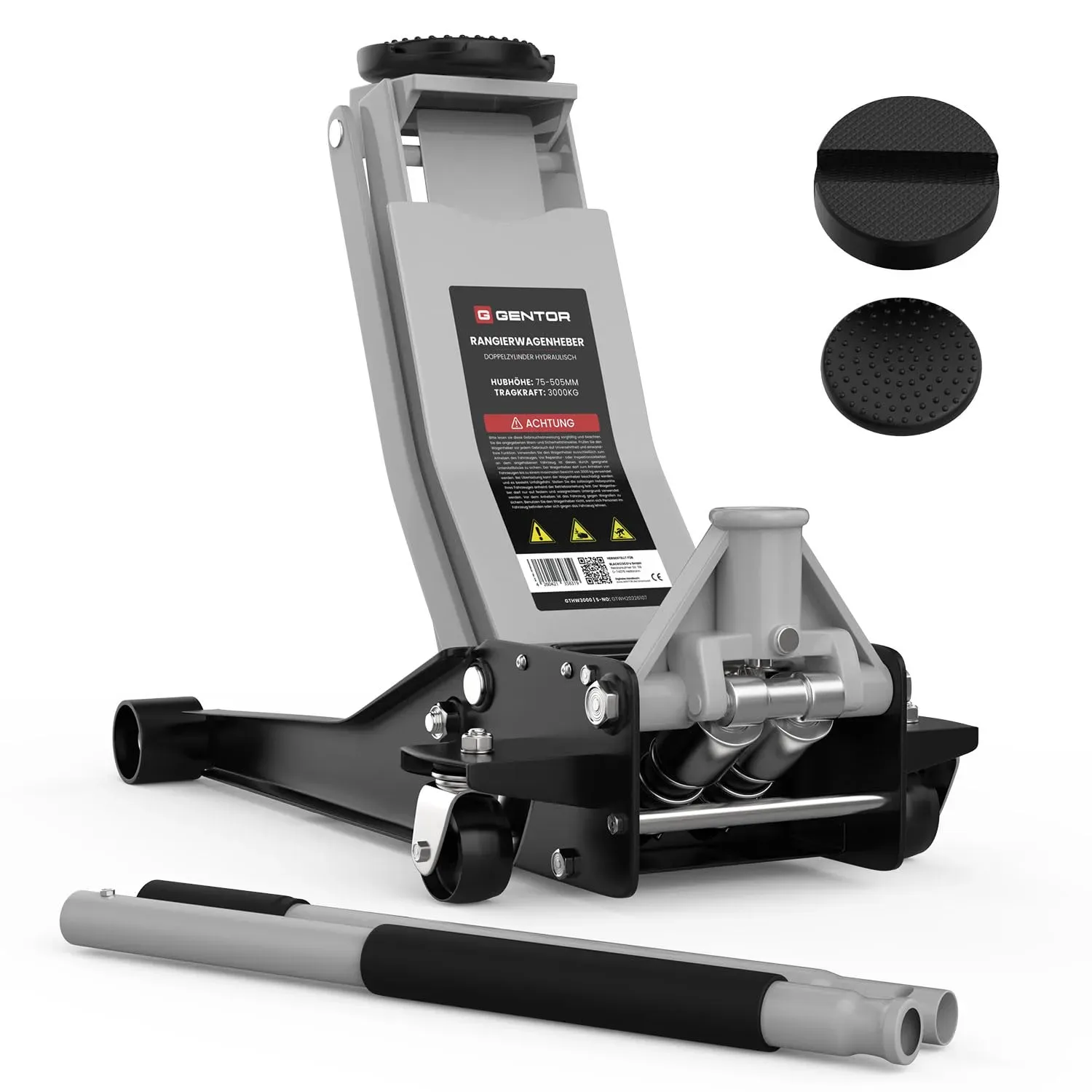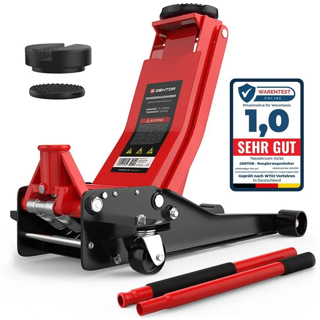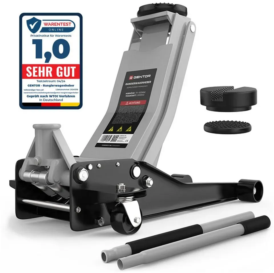6 Händlerangebote bei billiger.de - Kategorie: Werkstatteinrichtung - GENTOR - Profi Wagenheber 3T EuroFlach EuroSchneller Versand Euroauf Lager - Rangierwagenheber 3T: GENTOR Wagenheber 3T hydraulisch 75-505mm Rangierwagenheber flach Einfach und schnell GENTOR Rangierwagenheber 3T zu Hause oder in der Werkstatt nutzen. Eine extra flache Bauweise des Wagenhebers ermöglicht Ihn - GTIN:4260421358319 Dieser schwarze Wagenheber ist eine weitere preisgünstige Option mit 3T Tragkraft, flacher Bauweise und 360° Rollen für gute Manövrierbarkeit. ![]() ![]() GENTOR Wagenheber 3T hydraulisch flach 75 505 mm mit 2X Gummiauflage Profi Rangierwagenheber für PKW & SUV Schwerlast Heber mit 360 Rollen (Schwarz)