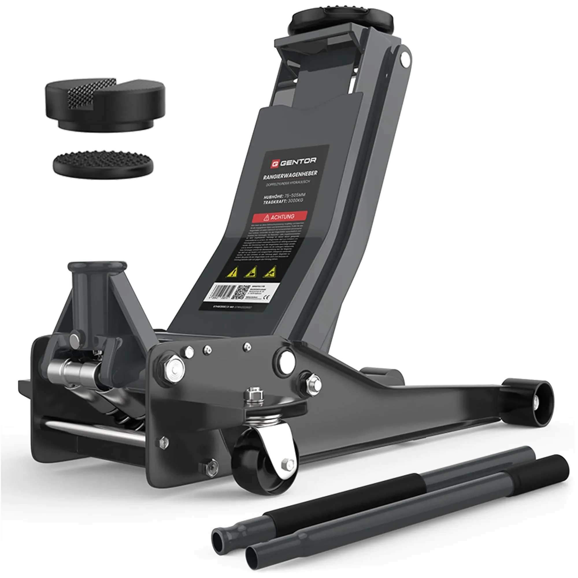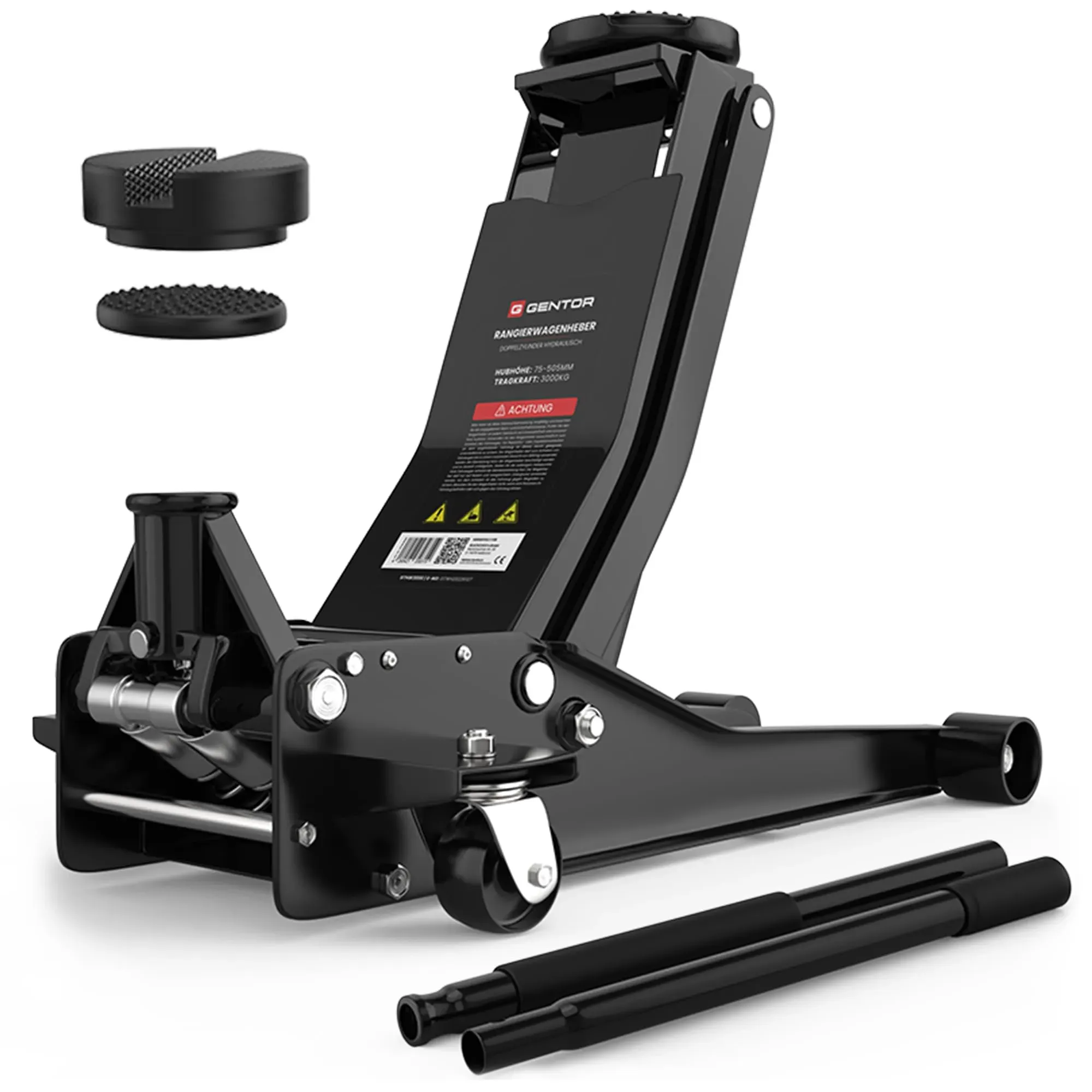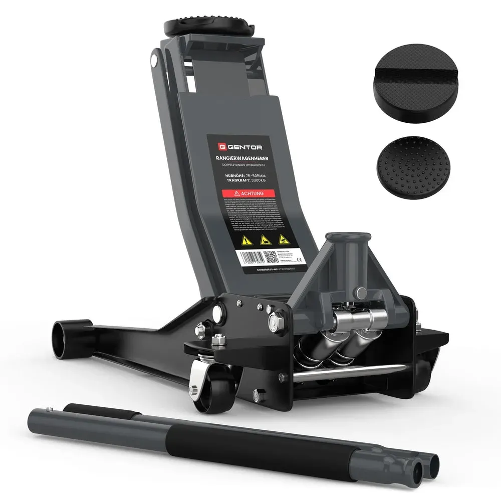 6 Händlerangebote bei billiger.de - Kategorie: Werkstatteinrichtung - GENTOR - Profi Wagenheber 3T EuroFlach EuroSchneller Versand Euroauf Lager - Rangierwagenheber 3T: GENTOR Wagenheber 3T hydraulisch 75-505mm Rangierwagenheber flach Einfach und schnell GENTOR Rangierwagenheber 3T zu Hause oder in der Werkstatt nutzen. Eine extra flache Bauweise des Wagenhebers ermöglicht Ihn - GTIN:4260421358319 Dieser schwarze Wagenheber ist eine weitere preisgünstige Option mit 3T Tragkraft, flacher Bauweise und 360° Rollen für gute Manövrierbarkeit. ![]() ![]() GENTOR Wagenheber 3T hydraulisch flach 75 505 mm mit 2X Gummiauflage Profi Rangierwagenheber für PKW & SUV Schwerlast Heber mit 360 Rollen (Schwarz)