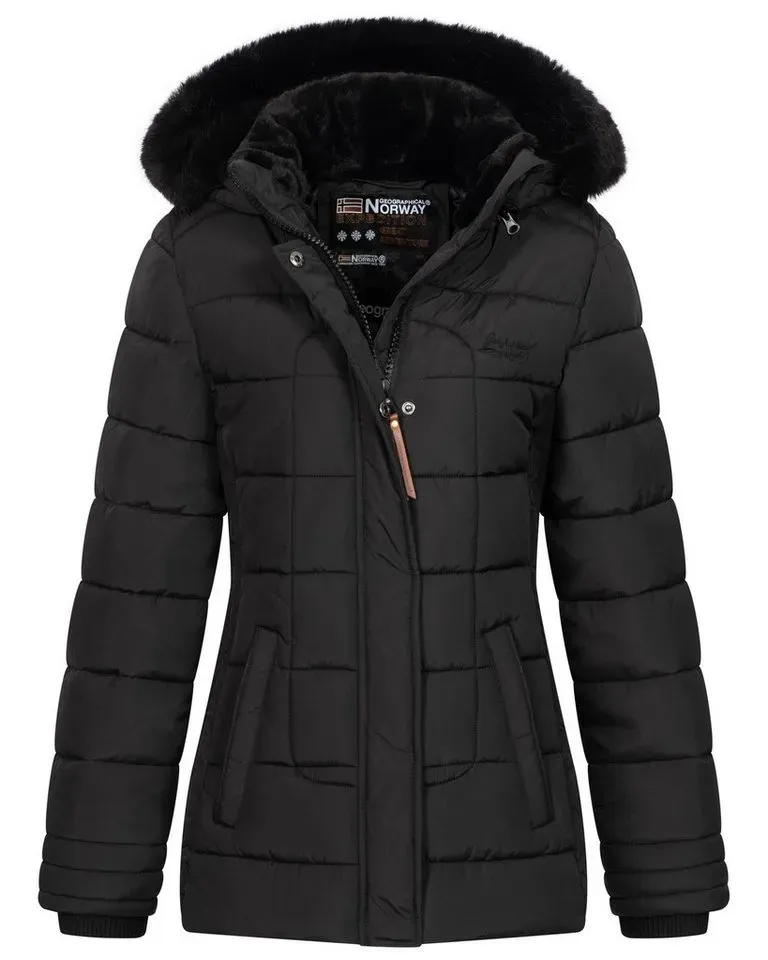 lieferbar-in 2-3 Werktagen bei dirGeographical Norway Steppjacke Damen Steppjacke Parka Winterjacke Warm Gesteppt Outdoor Jacke Kapuze schwarz M