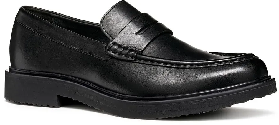 2 Händlerangebote bei billiger.de - Kategorie: Herren-Slipper - GEOX - Massimiano ist ein Loafer für Herren mit einer urbanen ästhetik und einem zeitgemäßen Flair.Gefertigt aus Leder, ist er die ideale Ergänzung für die tägliche Garderobe, sei es für Bürotage oder Freizeitaktivitäten. - GTIN:8058192409189 ![]() ![]() Geox Herren U MASSIMIANO Loafer, Black, 41 EU - 41 EU
