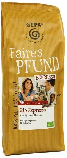 25.98 / 1 kg - Kategorie: Kaffee & Espresso - Gepa - GTIN:4013320034453 - GEPA Organico Caffee Crema - 100% weicher Bio Arabica aus dem Langzeitröster. Geschmackstärke 3 (1 = mild, 5 = kräftig) - 12,99 Euro bei naturPur - gefunden von billiger.de Mit 22.32 Euro für 1kg ganze Bohnen ist der "Fuego" eine preiswerte Option für größere Mengen. ![]() Memolife.d e GEPA Bio Espresso 'Fuego', ganze Bohnen 1 kg