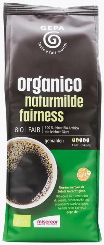 25.96 /kg - Kategorie: Kaffee & Espresso - Gepa - GTIN:4013320035009 - Caf Org nico der erste fair gehandelte Bio-Kaffee, der auf den deutschen Markt; Naturmilder sortenreiner Bio-Röstkaffee aus Mexiko, Peru und Bolivien; Reiner Arabica, langzeitgeröstet.Geschmackstärke 2 (1 = mild, 5 = kräftig) - 6,49 Euro bei naturPur - gefunden von billiger.de Mit 6.49 Euro für 250g gemahlenen Kaffee ist dies eine der günstigsten Optionen für Gepa Bio Kaffee. ![]() ![]() Gepa Caf Organico 250 g
