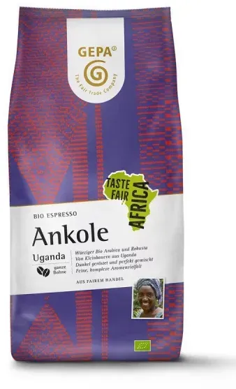 2 Werktage, Express 1 Werktag in_stock - Creme Molkereiprodukte Lebensmittel Kaffee, Tee & Kakao Kaffee & Espresso Lebensmittel & Einkäufe - EAN:4013320100585 - Die besonders aromatische, würzige GEPA Spezialität Fuego ist ein Bio-Espresso aus hochwertigen Arabica- und Robusta-Bohnen. Hervorragend für den Großverbraucherbereich geeignet. Frisch gemahlen ideal als Espresso oder als Café Creme. Ganze Bohnen. DE-ÖKO-005. Im PE/PP-Beutel verpackt. 1 Pack = 1 kg.... - gefunden von Kelkoo Dieser 1kg Beutel Espresso Ankole für 25.29 Euro ist eine gute Wahl für Vieltrinker und bietet ein gutes Preis-Leistungs-Verhältnis. ![]() ![]() GEPA Espresso Ankole bio 1kg