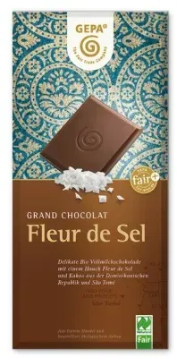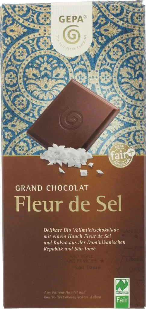 3 Händlerangebote bei billiger.de - Kategorie: Schokolade - Gepa - BESONDERS IM GESCHMACK: Mit handgeschöpftem Pyramidensalz FAIR und LECKER: Faire Naturland Bio-Milch aus Süddeutschland QUALITäT DIE SCHMECKT: Wir benutzt nur hochwertige Zutaten - GTIN:4013320185780 ![]() ![]() GEPA Grand Chocolat Fleur de Sel 37% bio