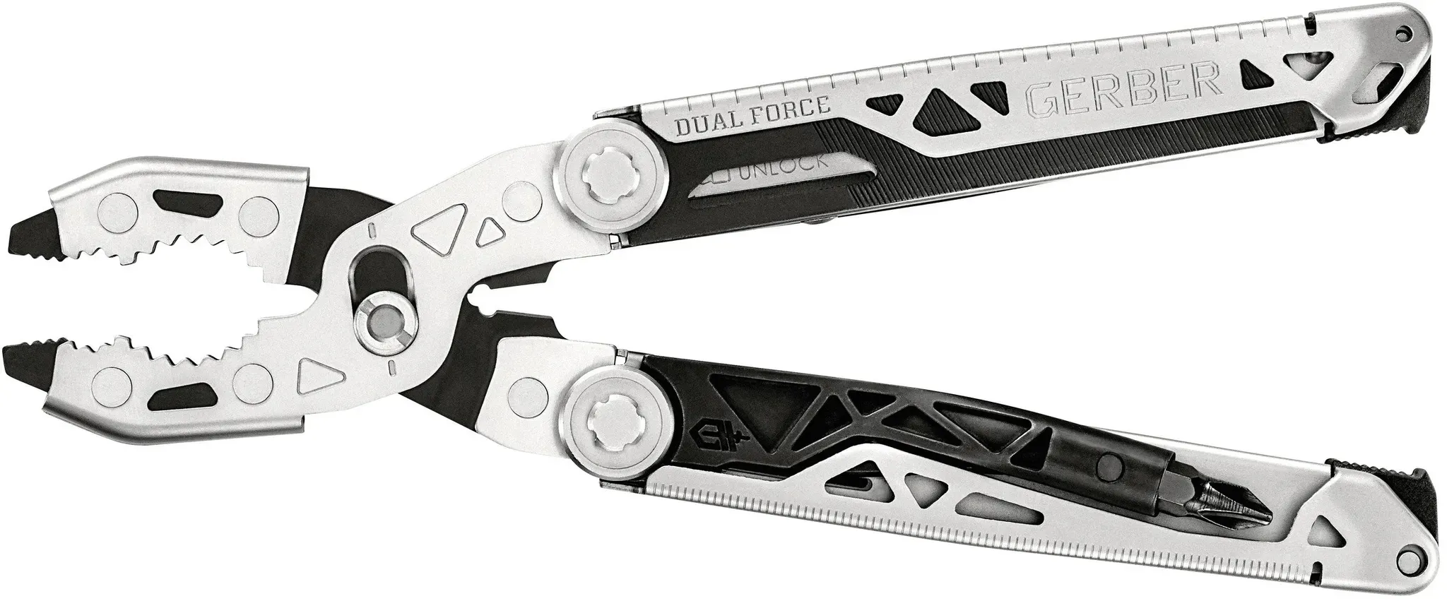 Multitools Sonstige - EAN:0013658158276 - Wenn Vielseitigkeit auf Robustheit trifft, entsteht ein Werkzeug wie das Gerber TRUSS. Entwickelt für anspruchsvolle Einsätze im Alltag, auf Tour oder im Beruf, vereint dieses voll ausgestattete Multi-Tool ganze 17 Funktionen in einem kompakten, durchdachten Design. Die federunterstützte Spitzzange erlaubt präzises Arbeiten bei gleichzeitig hoher Stabilität. Dank Butterfly-Öffnung und außenliegenden, arretierenden Werkzeugen hast Du jederzeit schnellen Zugriff auf Klingen, Säge, Schraubendreher & Co. Besonders praktisch: Die Kombination aus glatter Klinge und Wellenschliff, Ahle, Feile und Lineal deckt eine Vielzahl an Anwendungen ab - von der groben Holzarbeit bis zur Feinarbeit an Ausrüstung. Das mitgelieferte Gürteletui sichert den schnellen Zugriff unterwegs. - gefunden von Kelkoo Dieses Dual Force Multitool bietet 12 Funktionen und ein Holster, ideal für Nutzer, die ein robustes Werkzeug mit Einhandöffnung suchen. ![]() ![]()