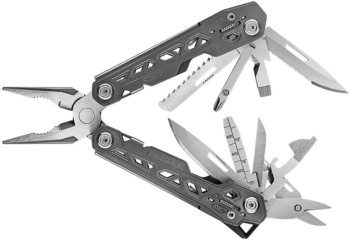 Werkzeug Handwerkzeuge Zangen & Kneifzangen Multifunktionszangen - Das Truss ist ein umfassendes Multifunktionswerkzeug mit 17 Werkzeugen, die in einem größenbewussten Design den hohen Anforderungen professioneller Benutzer gerecht werden. Dieses Multifunktionswerkzeug in voller Größe zielt darauf ab, überschüssiges Gewicht zu vermeiden, während die gesamte Funktionalität erhalten bleibt. Das Ergebnis ist ein Multifunktionswerkzeug in Profiqualität, das die Lücke zwischen Problem und Lösung schließt. Universell einsetzbares Multifunktionswerkzeug für verschiedene Arbeiten, Idealer Begleiter für zu Hause, beim Camping oder sonstigen Ausflügen 17 nützliche Funktionen für jede Situation wie Zange, Schere, Flaschenöffner, Ahle, Lineal, Feile oder Kreuz-/Flach-Schraubendreher Robuste Konstruktion mit gefederten Griffen und Messern mit Teilwellenschliff und gerader Klinge (Länge jeweils 5,7 cm) Praktisches Nylon-Holster, Überall verstaubar dank geringer Abmessungen in gefaltetem Zustand Lieferumfang: Gerber Multi-Tool Truss Länge: 16,5/11 cm - gefunden von Kelkoo Ein gutes Mittelklasse-Angebot für das Gerber Multitool Truss, das eine solide Balance zwischen Preis und Händler bietet. ![]() ![]() Gerber Multitool Truss