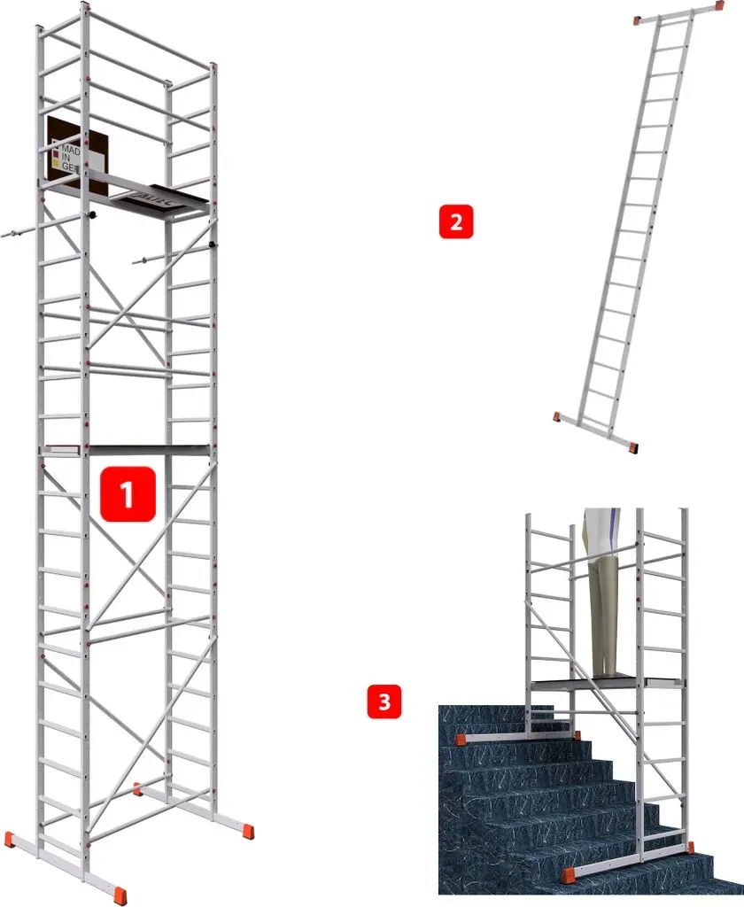 Kategorie: Gerüste - Altec - Erweiterung von Arbeitshöhe 7m auf 9m Plattformlänge 1,5m Belastbarkeit 200kg/m2 (Gerüstgruppe 3) komplett inklusive Zubehör - 661,00 Euro bei Amazon Marketplace Home Improvement - gefunden von billiger.de ![]() ![]() ALTEC Aluminium-Technik ALTEC AluCombine 3.0 - 700 | 7m | Alu Standgerüst für Heimwerker mit Traverse & Wandanker | EN131 | Baugerüst Montagegerüst Anlegeleiter