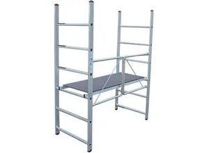 Kategorie: Gerüste - HAILO - GTIN:4007126945983 - Das Hailo Alu-Multifunktionsgerüst G60 vereint mit dem Fast & Lock-Schnellverschluss die Funktionen von Gerüst und Leiter in einem praktischen Gerät. Die einfache Handhabung und der leichte, schnelle Aufbau erfolgen durch den Fast & Lock-Schnellverschluss. Die Verwendung als Anlege- und Doppelleiter, als kleines Gerüst für den Innen- und Außenbereich oder als Arbeitsbühne ist möglich. Das Gerüst ist auch mit einer Treppenverstellung ausgestattet. Es verfügt über 2 Leiternelemente mit jeweils 12 Sprossen (27 mm × 27 mm) und Sicherheitsgelenken zum Ver- und Entriegeln der Leiternteile sowie über eine Arbeitsplattform mit Durchstiegsluke (61 cm × 46 cm). Das Gerüst ist mit 2 Querbalken, 2 Transportrollen, 4 Geländerholmen und 4 Diagonalstreben aus Aluminium ausgestattet. Die Abmessungen der Plattform sind 136 cm × 50 cm, die Holmdimension beträgt 60 × 22 mm und der Sprossenabstand 260 mm. Die maximale Belastbarkeit beträgt 150 kg/m2. - 539,99 Euro bei OBI - gefunden von billiger.de Dieses Fahrgerüst ist mit 549.94 Euro eine gute Wahl für Arbeiten bis 2,9 Meter Höhe und bietet Mobilität. ![]() 366994 / DE- Billiger- baur.de Fahrgerüst KRAUSE 'ProTec XS Alu-FaltGerüst', grau (aluminiumfarben), B:85cm H:180cm L:215cm, Aluminium, Gerüste, Arbeitshöhe: 2,9 Meter