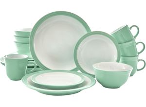 Service Wohnen Gedeckter Tisch Geschirr - - Das 16-teilige Kombiservice CAMDEN versprüht mit seiner traditionell runden Form, dem geprägten Relief-Rand und dem chic glänzenden Farben unwiderstehlich rustikalen Landhaus-Charm. Gefertigt aus hochwertigem Steinzeug besticht das Geschirr durch sein solides Aussehen und die dennoch junge und topaktuelle Zusammensetzung für 4 Personen. Egal ob drinnen oder draußen - CAMDEN passt sowohl als Familiengeschirr, als auch zur Gartenparty im Freien oder als Geschenk. Alle Teile des Sets sind spülmaschinen- und mikrowellengeeignet und ren damit einfachste Handhabe im täglichen Gebrauch. Dennoch sollten die Artikel vor dem verräumen gut abtrocknen - so hast Du lange Freude an Dekor und Glasur. Das Set besteht aus Frühstücks- und Speisetellern, (Henkel-)Bechern, Salat-/Müsli-/Suppenschalen., Material: Material: Steinzeug, Materialeigenschaften: glänzend, mikrowellengeeignet, Optik/Stil: Form Teller: rund, Optik: Linien, Farbbezeichnung: Salbeigrün/Weiß, Set-Bestandteile: Frühstücksteller: 4 Stk., Kaffeebecher: 4 Stk., Schalen: 4, Speiseteller: 4 Stk., Maßangaben: Fassungsvermögen Kaffeebecher: 350 ml, Durchmesser Speiseteller: 26,5 cm, Durchmesser Frühstücksteller: 20 cm, Durchmesser Schale: 16 cm, Produktdetails: Einsatzbereich: Gartenhaus, Haushalt, Party, Anzahl Personen: 4, Hitzebeständigkeit maximal: 180 °C, Hinweise: Pflegehinweise: spülmaschinengeeignet, Warnhinweise: Bitte gut trocknen lassen. - Versandkostenfrei: false - Sale: ... Dieses 24-teilige Steinzeug-Kombiservice ist spülmaschinen- und mikrowellengeeignet und bietet eine gute Qualität für den Alltag. ![]() ![]()