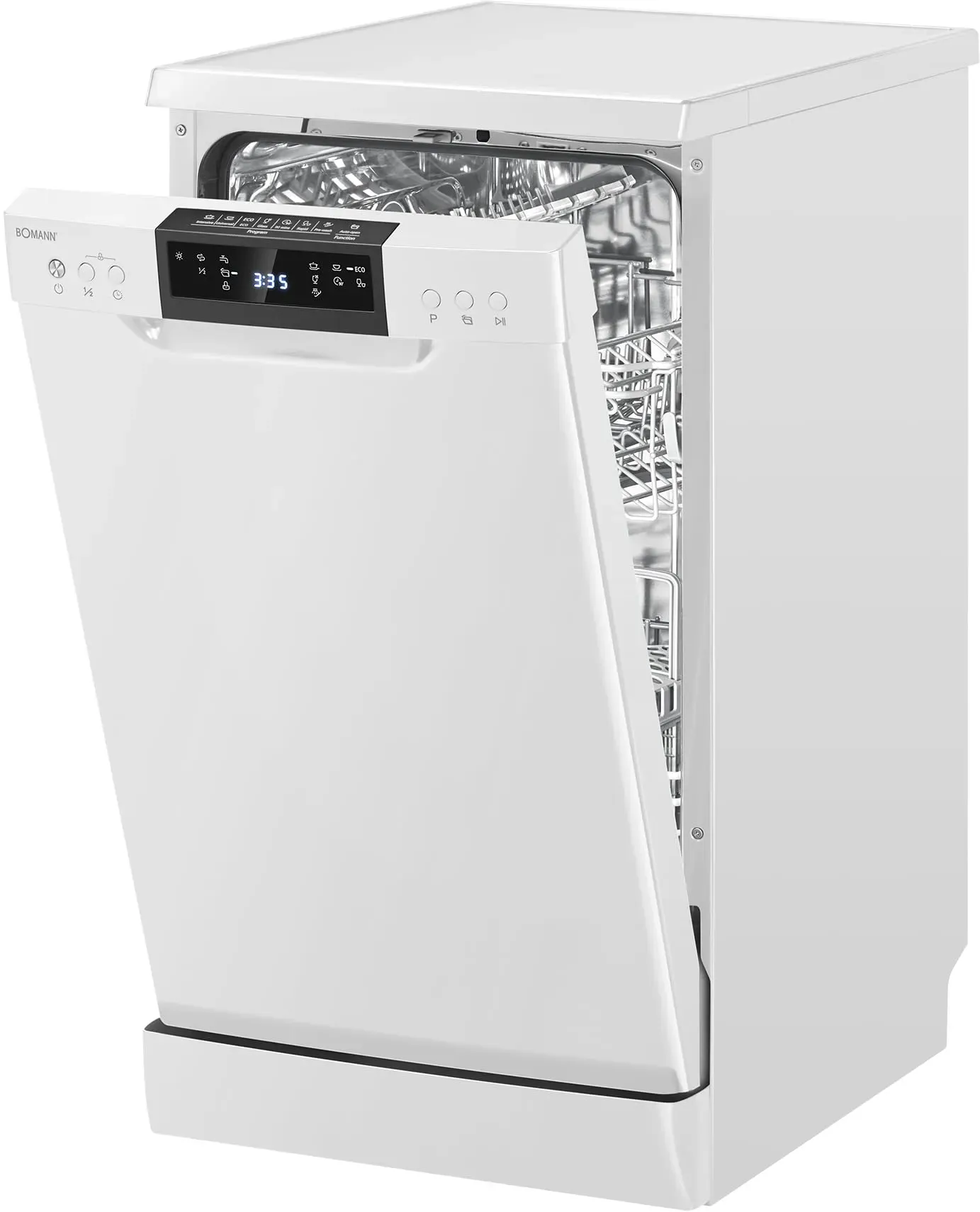 10 Händlerangebote bei billiger.de - EEK: D - Kategorie: Geschirrspüler - Bomann - Der Bomann Geschirrspüler 45cm mit seiner kompakten Größe fügt sich nahtlos in jede Kücheneinrichtung ein und bietet dennoch ausreichend Platz für Ihr Geschirr, perfekt für kleine Haushalte oder als Zusatzgerät Mit einer Kapazität von 10 Maßgedecke können Sie sicherstellen, dass all Ihr Geschirr, Gläser und Besteck bequem Platz finden und gründlich gereinigt werden, ideal für Familienessen oder Dinnerpartys Der Geschirrspüler freistehend verfügt über 7 Programme für jede Verschmutzung, egal ob stark verschmutztes Geschirr oder empfindliche Gläser Die vielseitigen Spühlmachaschinen Programme ren eine optimale Reinigung und Hygiene für Ihr Geschirr und die hohe Temperatur von 45 C bis 72 C sorgt dafür, dass Bakterien und Keime effektiv entfernt werden Die silbergraue Geschirrkörbe, der Besteckkorb / die Besteckablage, der höhenverstellbarer Oberkorb, die Tassenablage und die Gläser-/Tellerhalterung, erleichtern das Einräumen und Ausräumen der Geschirrspülmaschine - GTIN:4004470741803 ![]() ![]() Midea SF 5.45NW10C Geschirrspüler 45cm Freistehend & Unterbaufähig, 10 Maßgedecke, 7 Programme, Spülmaschine 45 cm mit WIFI, 44 db, Startverzögerung, Automatische Türöffnung, 63 kWh/100 Zyklen, Weiß