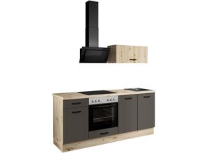 Lifestyle - - Produktdetails: Markeninformationen: Seit 1990 ist Impuls Küchen in Brilon ansässig und ein Unternehmen der Briloner Möbel Werke. Der Name IMPULS KüCHEN steht für zeitlos moderne Küchen, die sich nicht nur sehen lassen können, sondern auch in Bezug auf Qualität, Technik und Ausstattung überzeugen und immer mehr Fans und Freunde gewinnen., Serie: Lissabon, Set beinhaltet: Spülen-Unterschrank 45cm, Frontplatte für vollintegrierten Geschirrspüler 45cm, Unterschrank mit Schubkasten 45cm, Unterschrank für Einbauherde 60cm, Klappen-Hängeschrank 80cm, Arbeitsplatte b: 195cm, Sockel, E-Geräte (Herd, Kochfeld, Geschirrspüler, Dunsthaube), Granit-Einbauspüle Schwarz, Stellvariante: Spülenschrank links, Ausstattung Funktionen: Art Küche: Küchenzeile, Ausführung: mit E-Geräten, Ausstattung: Einlegeböden höhenverstellbar, Höhenverstellbare Füße, Laufleisten der Schubkästen aus Metall, Schubkästen mit Soft-Close-Funktion, Stabile Metallauszüge, mit E-Geräten, weitere Informationen zu Elektrogeräten: siehe Produktdatenblatt, Ausstattung Geräte: mit E-Geräten, Farbe Material: Farbe Korpus: Grafit, Material Korpus: Holzwerkstoff, Farbe Front: Vintage Eiche-Nachbildung, Material Front: Holzwerkstoff, Dekorfolie, Farbe Schubladen: Vintage Eiche-Nachbildung, Farbe Türen: Vintage Eiche-Nachbildung, Farbe Griffe: Schwarz, Material Griffe: Aluminium, Farbe Absetzungen: Grafit, Farbe Arbeitsplatte: Lavagrau, Farbe Innendekor: Weiß, Material Beschläge: Metall, Material ... ![]() Küchenzeile IMPULS KüCHEN 'Lissabon', Ausrichtung wählbar, Schubkästen mit Soft-Close', küche: braun, front: vintage eiche, nachbildung, korpus: grafit, arbeitsplatte: lavagrau, B:195cm H:185cm T:60cm, Komplettküchen-Sets, Küchenzeile, vormontiert, wahlweise mit E-Geräten, mit Vollauszug, Breite 195 cm