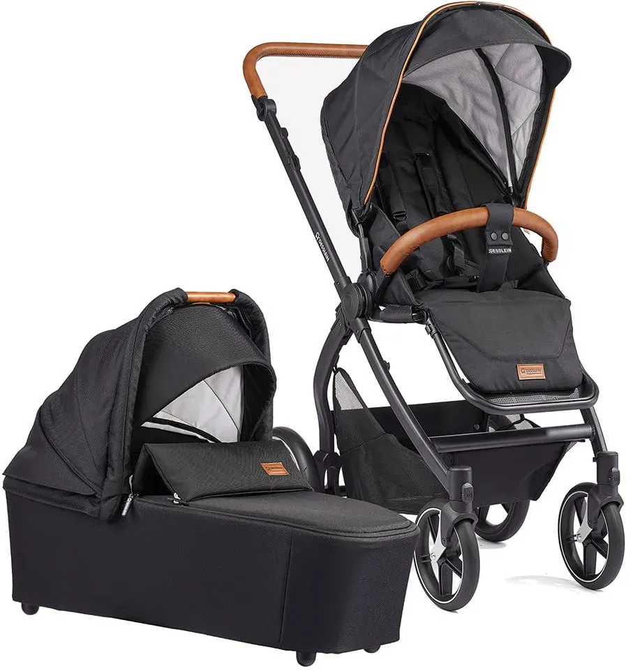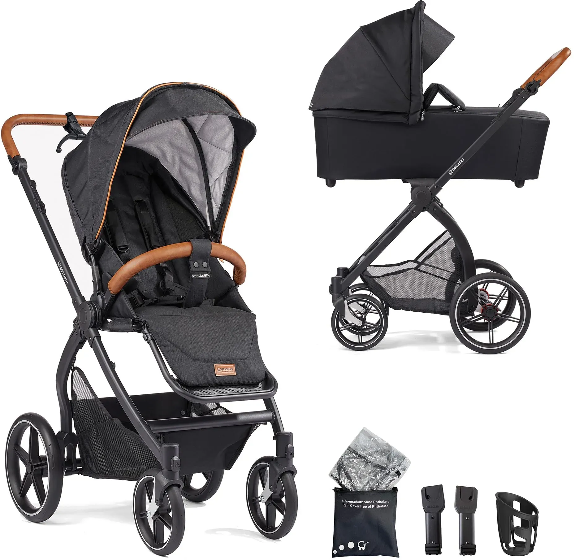 Auf Lager Versand durch AmazonGesslein Kinderwagen FX4 STYLE, Baby Erstausstattung (leichtes Kinderwagen Set mit Liege- und Sitzoption, individuell einstellbar, Fünf-Punkt-Sicherheitsgurt, Kinderwagen 3 in 1), Schwarz