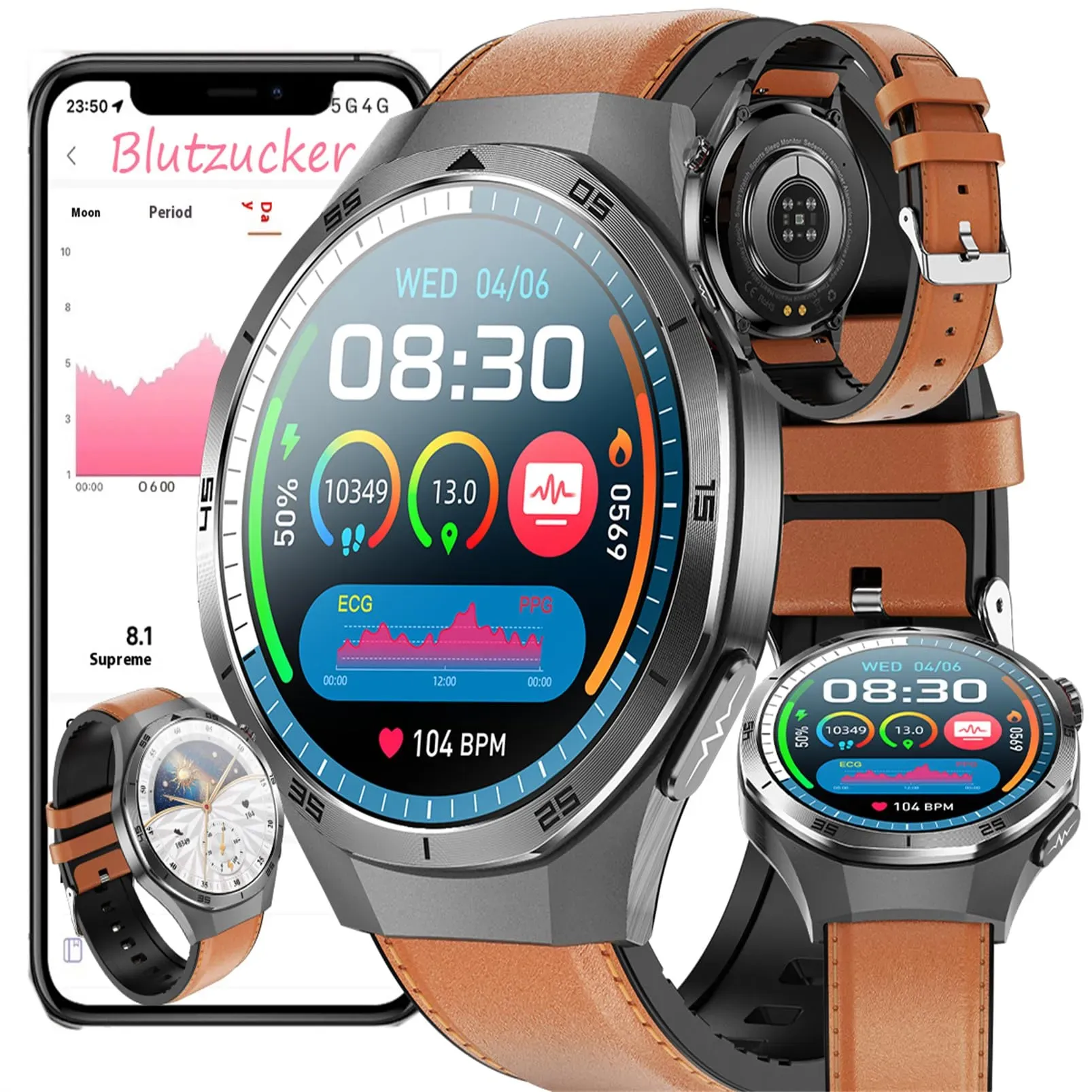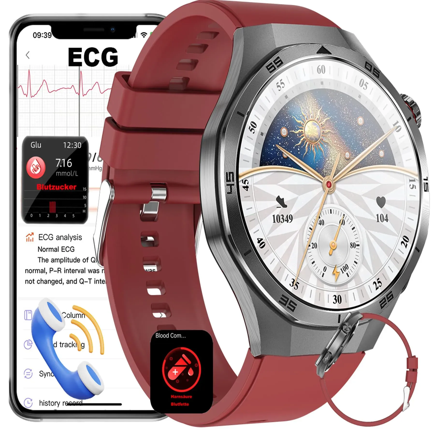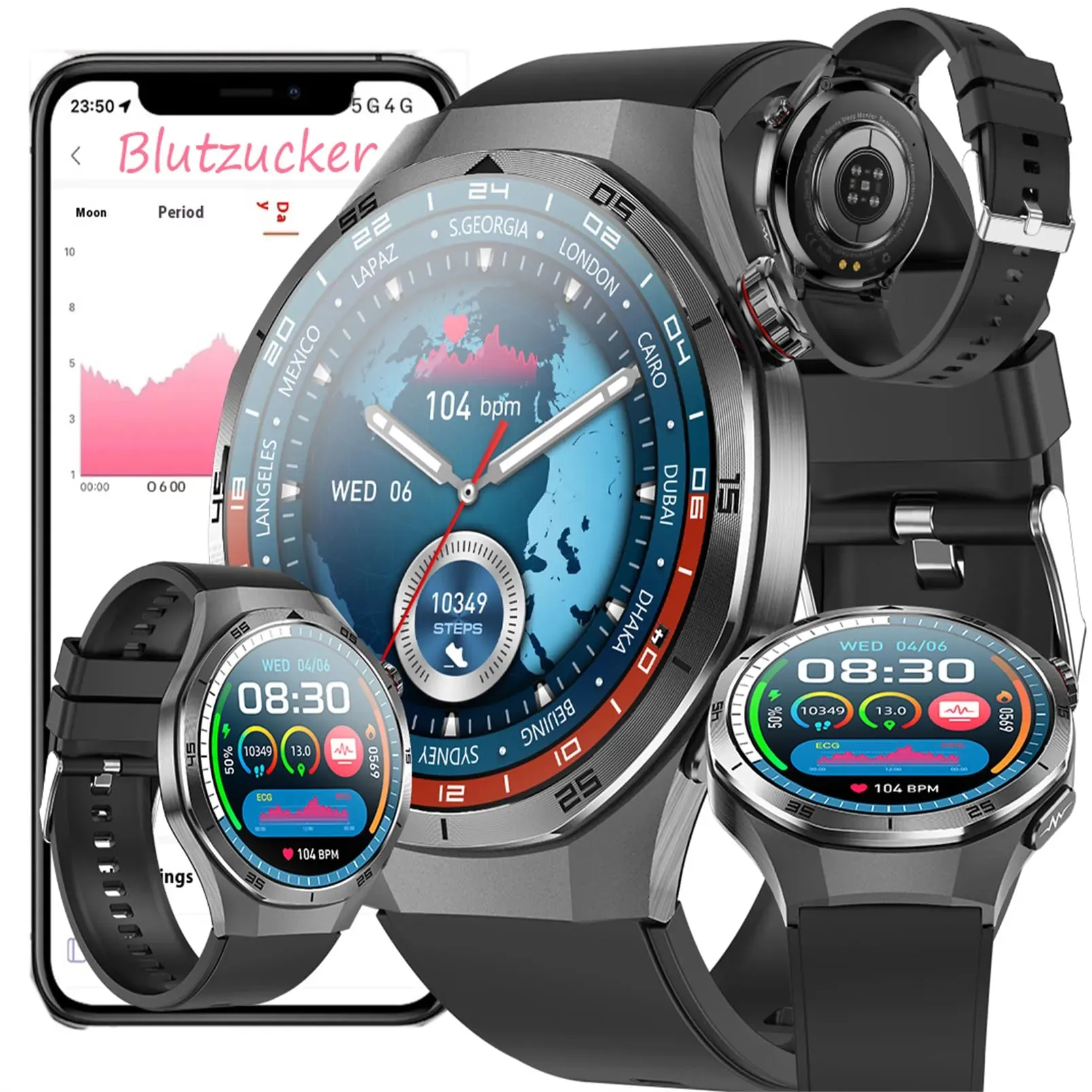 Zustand: Neu - Smartwatches - TAOPON - Montre Connectée Homme - - Smartwatch herren gesundheitsuhr mit ð„ð‚ð† und ð‡ð‘ð•, ðð¥ð®ðð³ð®ðœð¤ðžð«: Im unterschied zu herkömmlichen gesundheitsüberwachungen ermöglicht die nicht invasive ðð¥ð®ðð³ð®ðœð¤ðžð«ð¦ðžð¬ð¬ð®ð§ð eine mühelose überwachung ohne blutentnahme per fingerstich. diese uhren herren erfasst die bioelektrischen signale des herzens mithilfe des EKG messprinzips. mit einer einfachen taste können sie EKG daten schnell erfassen,um herzrhythmusstörungen zu erkennen,nur als referenz kein medizinischer wert Diese armbanduhr herren misst herzfrequenz, blutsauerstoffsättigung, blutdruckmessung, körpertemperatur, atemtraining und stress auf knopfdruck. die smartwatch herren uhr ist außerdem mit einer schlafüberwachung ausgestattet. die app zeichnet die schlafdauer, leichtschlaf, tiefschlafzeit auf und hilft Ihnen, Ihre schlafqualität zu verbessern. so können sie Ihre körperliche verfassung immer im auge behalten und Ihren gesundheitszustand besser verstehen. hinweis: daten dienen nur zur orientierung Uhr herren mit 1,97 zoll HD full touchscreen AMOLED großer bildschirm, 2 tasten (spezielle ð„ð‚ð† seitentaste und runder drehknopf), auflösung 390 x 450, ermöglicht Ihnen, die Informationen auf dem bildschirm vollständig anzuzeigen, klarem text und lebendigen farben, fitness uhr mit weichem und hautfreundlichem silikonarmband, bieten sie ein besseres ... ![]() ![]() Fohatu ECG Smartwatch blutzucker blutzuckermessung EKG Diabetes Harnsäure/ECG Gesundheitsuhr Mit Telefonfunktion/SOS,24H Herzfrequenz SPO2 Blutdruck Fitnessuhr