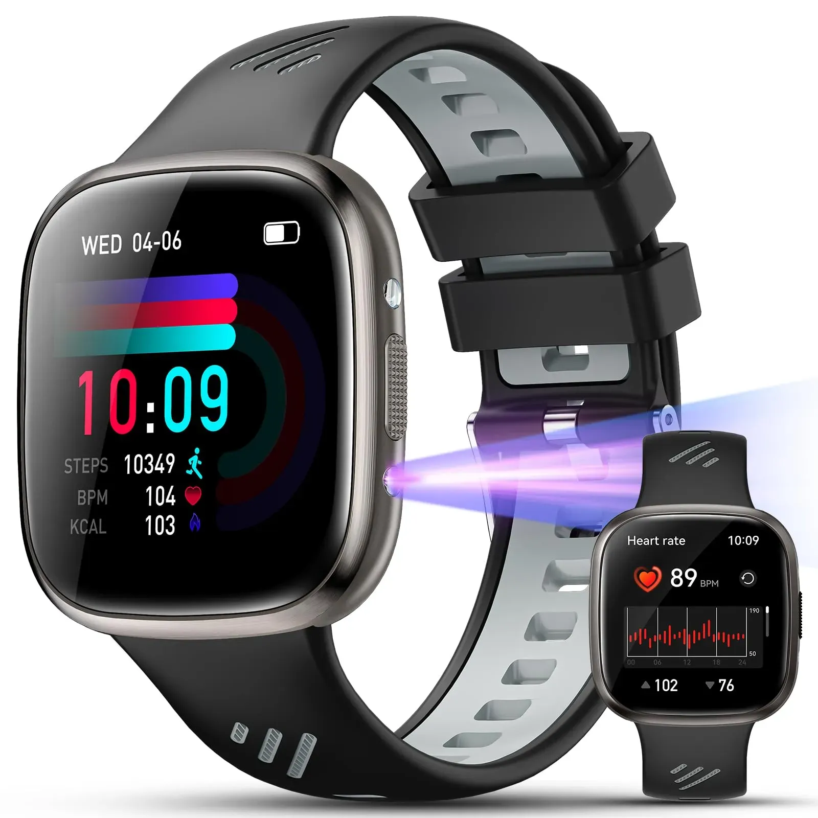 Kategorie: Smartwatches - YUPENG - Ganztägige Gesundheitsüberwachung: Die Smartwatch zur Blutdruckmonitoring bietet unterbrechungsfreie Tests. Es ermöglicht es Ihnen, alle Aspekte Ihrer Gesundheit zu kontrollieren, wie z. B. Herzfrequenz, Blutstoffgesättigung, Blutdruck, Schlaf. Taschenlampe und UV-Licht: Die Taschenlampe verfügt über Konstant-, Alarm- und SOS-Modi, um Ihre Sicherheit während des Fahrens in der Nacht zu gewährleisten. UV-Licht hat eine Bargeld-Verifizierung Funktion. Bluetooth-Anrufe und Anwendungsbenachrichten: Mit Bluetooth können Sie mit unserer Uhr Anrufe schneller und konsistenter tätigen und beantworten, wodurch Sie klareren Klang mit weniger Störungen erhalten und so einfach zu bedienen sind. Die Smartwatch mit intelligentem Sprachassistenten gibt Ihnen die Hände frei und Sie können Wetter- und Gesundheitsdaten abrufen und Alarme einstellen. Die Uhr kann Benachrichtigungen von Nachrichten (WhatsApp, Facebook, etc.) empfangen. Unterstützt 100 Arten von Sportarten, Echtzeitüberwachung der Herzfrequenz, Schritte und verbrannte Kalorien, diese Herren-Smartwatch hilft Ihnen, die Wirkung jedes Trainings genau zu kontrollieren; Darüber hinaus umfasst die Sportuhr IP68 wasserdichte überwachung, die Veränderungen in Ihrem Körper verfolgt und Sie begleitet, um höhere Ziele zu überwinden und herauszufordern 1,72 Zoll hochauflösender weicher Bildschirm mit 360 * 360 Auflösung bietet Ihnen eine größere und klarere visuelle Erfahrung. Wählen Sie aus über 150 ... ![]() ![]() BANLVS Smartwatch Herren Damen mit ??????????/???/???, 1,83" Gesundheitsuhr mit 150+ Sportmodi, Herzfrequenz, SpO2, Schlafmonitor, IP68 Fitness Tracker Uhren für iOS Android Schwarz