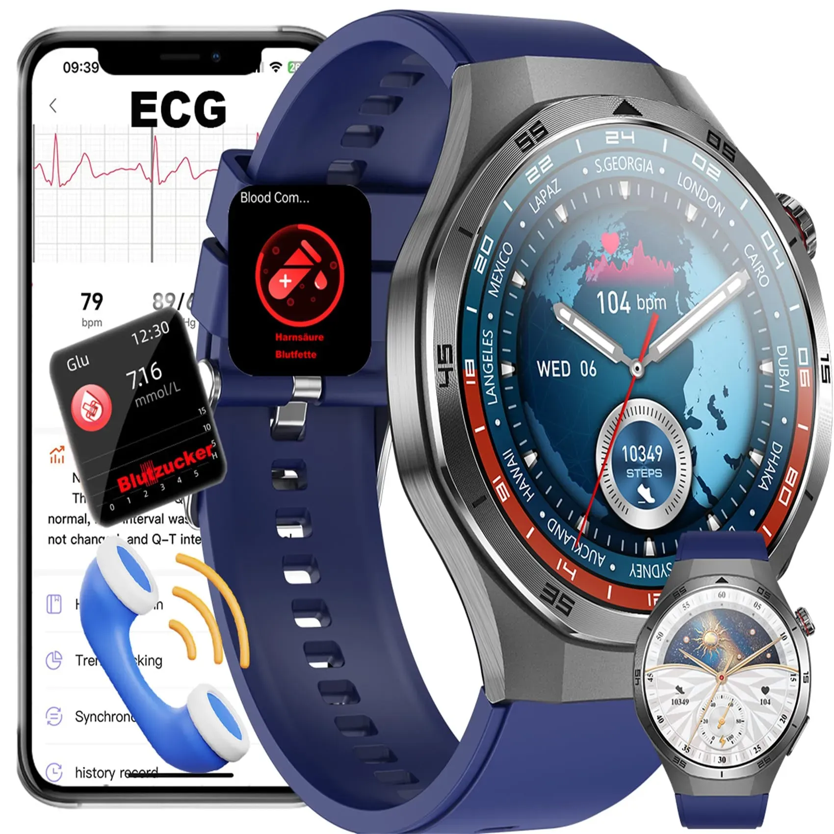 Zustand: Gebraucht - Smartwatches - BANLVS - G59PRO - - EKG und HRV Gesundheitsüberwachung: Diese Smartwatch herren und damen mit EKG-Funktion nutzt eine nicht-invasive ðð¥ð®ðð³ð®ðœð¤ðžð«ð¦ðžð¬ð¬ð®ð§ð , die die Mühe der herkömmlichen Blutentnahme aus der Fingerkuppe überflüssig macht und den Trend der ðð¥ð®ðð³ð®ðœð¤ðžð« jederzeit und überall erfasst. Die EKG-Erkennungsfunktion erstellt mit einem Klick ein EKG und arbeitet mit der HRV-Herzfrequenzvariabilitätsanalyse zusammen, um Ihnen einen umfassenderen Schutz Ihrer Herz-Kreislauf-Gesundheit zu bieten. Intelligenter Gesundheitsschutz: Intelligentes Überwachungssystem rund um die Uhr, genaue Messung von Herzfrequenz, Blutsauerstoff, Blutdruck und Stresslevel, damit Sie Ihre körperliche Verfassung jederzeit im Blick behalten. Diese Smartwatch Herren verfügt außerdem über professionelle Schlafanalysetechnologie, die Tiefschlaf, Leichtschlaf und REM-Schlafzyklen vollständig aufzeichnet und Ihnen hilft, die Schlafqualität zu optimieren und Gesundheit und Vitalität wiederherzustellen. Professioneller Sportmodus: Diese Fitnessuhr Herren unterstützt mehr als 150 Trainingsmodi und verfügt über eine spezielle BMI-Index-Tracking-Funktion. BANLVS Smartwatch Herren verfügt über einen integrierten hochpräzisen Sechs-Achsen-Sensor, der Trainingsherzfrequenz, Schritte, Distanz und Kalorienverbrauch in Echtzeit erfasst. Dank der Wasserdichtigkeit nach IP68 ist sie für das tägliche ... ![]() ![]() Fohatu blutzucker Smartwatch blutzuckermessung EKG Diabetes Harnsäure/BMI Gesundheitsuhr Mit Telefonfunktion/SOS,24H Herzfrequenz SPO2 Blutdruck Fitnessuhr