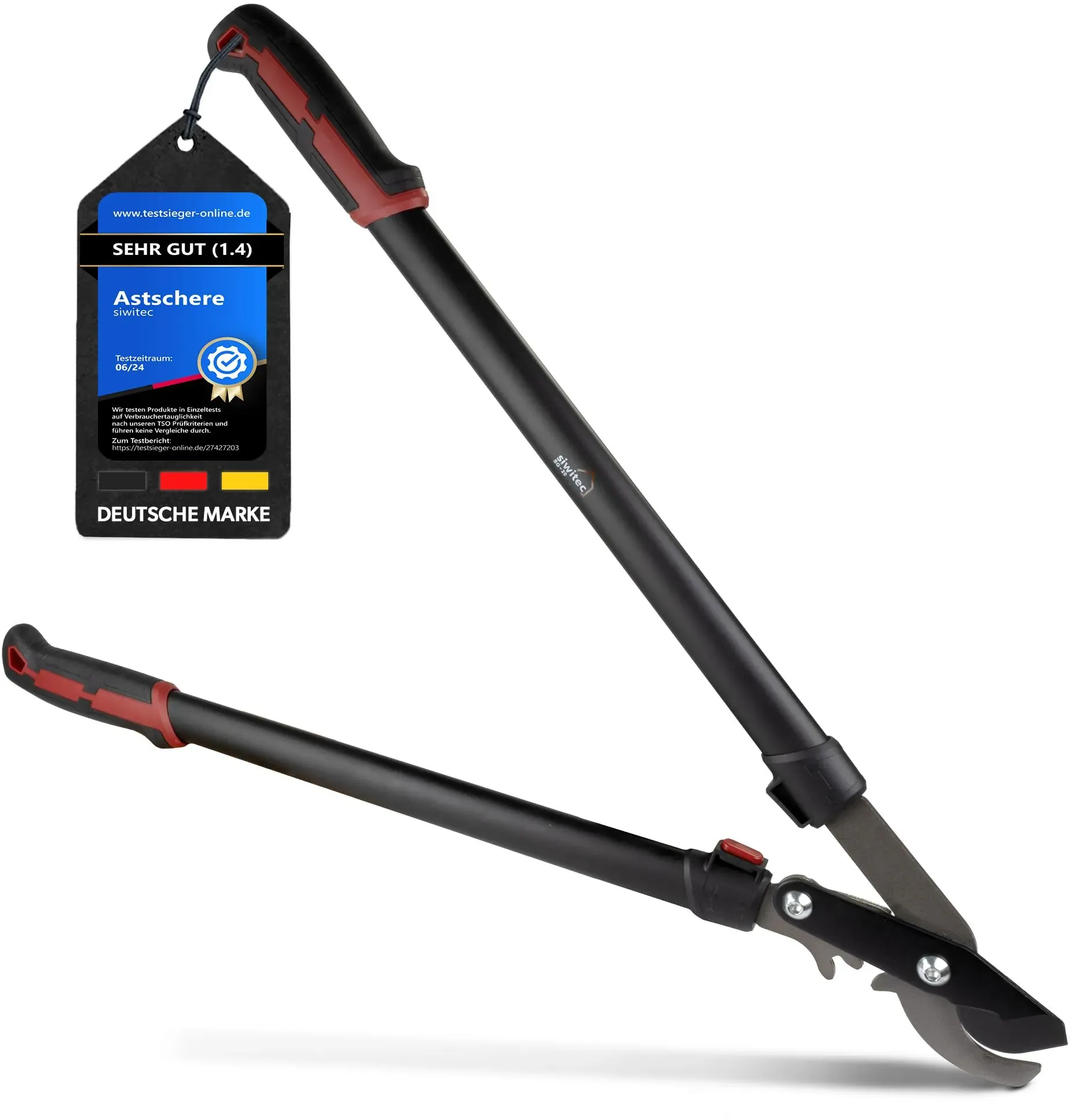 Kategorie: Gartenwerkzeuge - siwitec - GTIN:4260368156122 - GETRIEBE - Die siwitec Astschere SG-22 hat ein integriertes Getriebe, was für maximale Schneidleistung mit geringem Kaufaufwand sorgt, um frische äste mit bis zu 40 mm Durchmesser mühelos schneiden zu können. AMBOSS-KLINGE - Beim Schneiden trifft die scharfe Klinge aus hochwertigem Kohlenstoffstahl auf eine flache Metallfläche, was für zusätzliche Kraft sorgt beim Rückschnitt von hartem, trockenem Holz. ERGONOMISCHER GRIFF - Der ergonomisch geformte Kunststoffgriff sorgt für ein angenehmes Schneiderlebnis und die Anti-Rutsch-Gummierung am Griff sorgt für optimalen Halt. ULTRALEICHTE ALUMINIUM-HEBELARME - Die siwitec Astschere ist sehr leicht und Stabil, da die Hebelarme aus hochwertigem Aluminium gefertigt sind, was die nicht so ermüdend macht. TECHNISCHE DETAILS: Schneidsystem: Amboss | Material Klinge: 65 Mn Kohlenstoffstahl | Material Hebelarme: Aluminium | Material Griffe: Kunststoff mit Gummierung | Abmessung: 75,5 x 24,5 cm | Gewicht: 1,202 kg | Max. Schnittstärke: 40 mm | Farbe: Schwarz-Rot - 26,90 Euro bei Amazon Marketplace Home Improvement - gefunden von billiger.de Die siwitec Bypass Getriebeastschere SG-20 ist eine gute Wahl für frisches Holz und bietet ein gutes Preis-Leistungs-Verhältnis. ![]() ![]() siwitec Bypass Getriebeastschere SG-20, Bypass Baumschere für frisches Holz bis zu 40 mm, Astschere mit scharfer Klinge aus Kohlenstoffstahl, Länge: 75 cm, Baumschere, Gartenschere