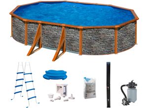 Swimmingpools Wohnen Haus Garten Garten Balkon - - Der Poolset wird mit allem erforderlichen Ausrüstungen für die Montage geliefert: UV-behandelte Stahlwand, Innenhülle, Skimmer, Sandfilteranlage und Leiter., Produktdetails: Form: oval, Aufbauvariante: Aufstellbecken, Art Becken: Stahlwandbecken, Ausstattung: Leiter, Skimmer, Material Rahmen: Stahl, Filteranlage: Sandfilteranlage, Leistung Pumpe: 4.000, Anzahl Leiterstufen: 3 Stk., Modellbezeichnung Filteranlage: FS320, Durchmesser Filteranlagenkessel: 320 mm, Farbe Material: Farbe innen: grau, Material Folie: Polyvinylchlorid (PVC), Material Wand: Stahl, Material Leiter: Edelstahl, Kunststoff, Farbbezeichnung: anthrazit, Maße Gewicht: Folienstärke: 0,3 mm, Wandstärke: 0,4 mm, Füllmenge: 14.550 l, Höhe: 120 cm, Breite: 300 cm, Länge: 500 cm, Gewicht: 210 kg, Benutzergewicht maximal Leiter: 110, Hinweis Maßangaben: Alle Angaben sind ca.-Maße., Hinweise: Lieferumfang: Pool inkl. Poolfolie, Sicherheitsleiter, Skimmerpaket, Sandfilteranlage, Altersempfehlung: Es liegt keine Altersempfehlung vor, Warnhinweise: ACHTUNG! Der Auf- und Abbau des Pools darf nur durch Erwachsene erfolgen. Nur unter Aufsicht von Erwachsenen benutzen. Die beiliegende Bedienungsanleitung lesen und beachten. Für zusätzliche Produkt- oder Warnhinweise bitte das Handbuch zu Rate ziehen!, Hersteller gemäß den -Bedingungen - Versandkostenfrei: false - Sale: true - Lieferzeit: 2 Wochen - Hersteller-Farbe: anthrazit - Farbe: Dunkelgrau - - Versand mit ... Dieser Ovalpool von MY POOL BWT ist eine hochwertige Option für den Garten, komplett mit Solardusche für zusätzlichen Komfort. ![]() Ovalpool MY POOL BWT 'B 300 x L 500 x H 120 cm', grau (stein, holzdekor), B:300cm H:120cm L:500cm, Schwimmbecken, mit Solardusche