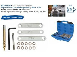 Kategorie: Eisenwaren - ccauub - GTIN:0769092437780 - ?Build to Last?: Hergestellt aus Hochgeschwindigkeitsstahl, Edelstahl und Kohlenstoffstahl, ist dieses Produkt schlagfest und stellt Ihren langfristigen Gebrauch sicher. Es kann für die Reparatur beschädigter Gewinde verwendet werden, was sehr praktisch ist. ?Komplettwerkzeug?: Das Kit enthält 131 Reparaturteile, die Ihre Bedürfnisse für die Reparatur von Gewinden unterschiedlicher Größe erfüllen können. ?Kostenersparnis?: Im Vergleich zum Austausch der gesamten Komponente ist die Verwendung dieses Kits zur Reparatur beschädigter Gewinde eine wirtschaftlichere Methode, die Reparaturkosten und -zeit erheblich einsparen kann. ?durchdachtes Design?:Die Gewindehülse kann die Hitzebeständigkeit des reparierten Gewindes verbessern und seine Lebensdauer insbesondere unter rauen Arbeitsbedingungen verlängern. Der Brecher kann verwendet werden, um den Stahldraht in der Mitte der Schraubenhülse zu brechen. Das Schraubenmontagewerkzeug ist bequem für die Installation von Schraubeneinsätzen. ?Einfach zu tragen?:Der ausgestattete Werkzeugkasten kann alle Werkzeuge geordnet organisieren. Darüber hinaus ermöglicht die Werkzeugkiste es Ihnen, dieses Kit einfach überall hin zu tragen, wo Sie es brauchen, ohne zu viel Zeit und Mühe aufzuwenden. - 20,00 Euro bei Amazon Marketplace Automotive - gefunden von billiger.de Ein spezialisierter Satz für M9 x 1,25 mm Gewinde, der sich besonders für Bremsgewinde-Reparaturen eignet. ![]() Bgs Gewinde-Reparatursatz - M9 x 1,25 mm - 30-tlg. [Hersteller-Nr. 9435]
