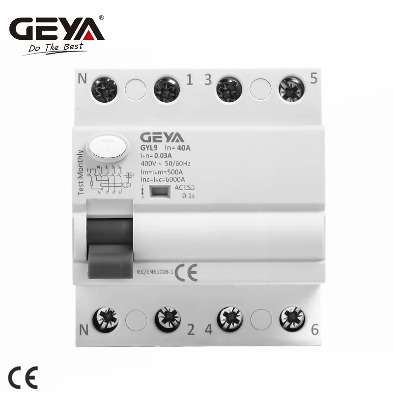 Auf Lager Versand durch AmazonGEYA Automatische Wiedereinschaltvorrichtung Leckage-Leistungsschalter RCD Elektromagnetisch (GRD9L-R AC220V+A-SI Type RCCB 4P-63A-30mA)