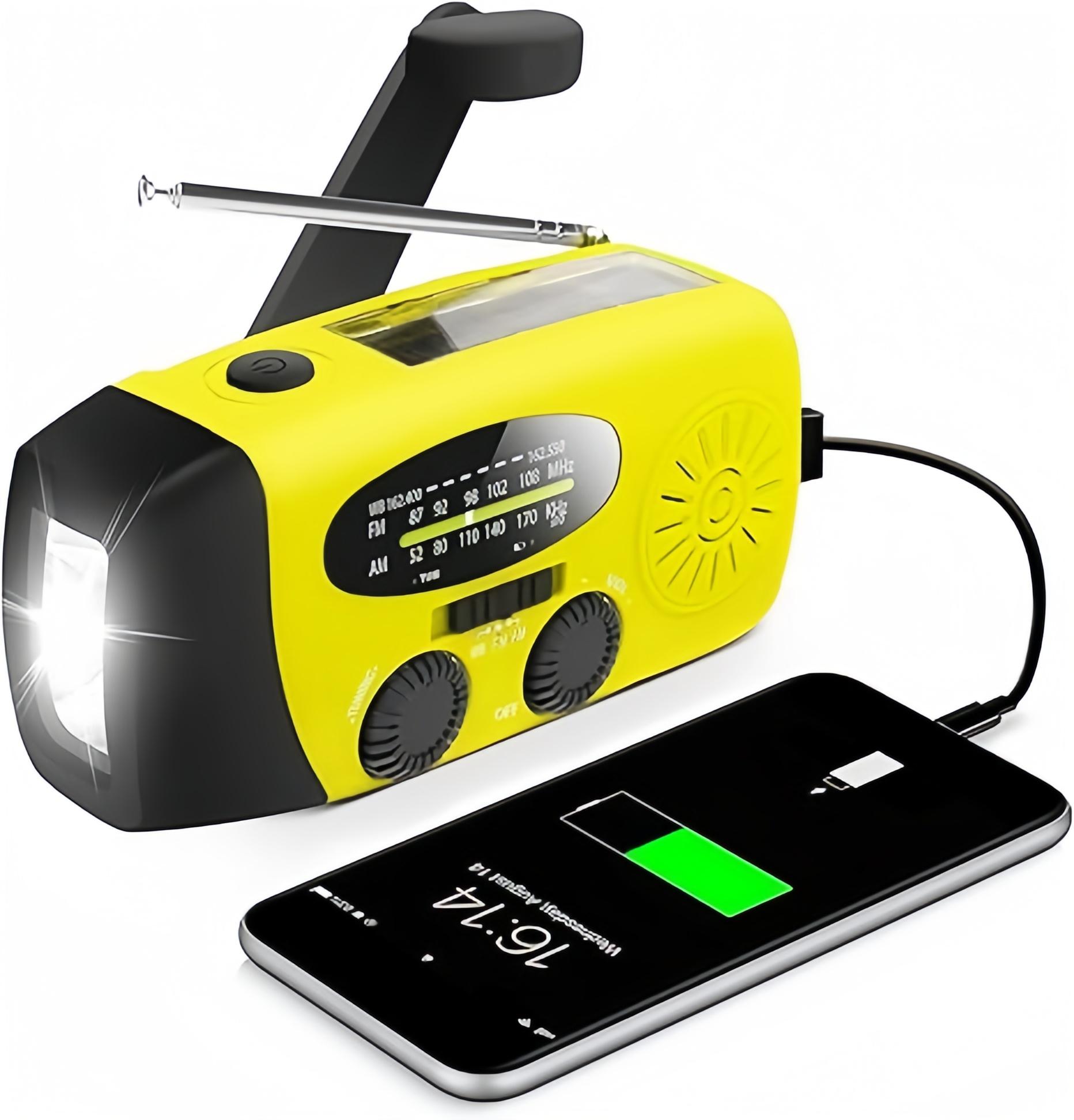 EAN: 0717566912257 - EIGENSCHAFTEN:3 Lademethoden ist das wiederaufladbare Radio immer einsatzbereit! Der leistungsstarke das Solarpanel oder die Handkurbel aufgeladen werden.AM hat eine größere Empfangsreichweite als FM-Kurzwellenradio, aber FM kann Unterhaltung, Sport, Talkshows und Nachrichten innerhalb von zehn Kilometern deutlicher empfangen.Kompaktes LED Taschenlampe Radio mit 1 W länger anhaltender, leistungsstarker LED kann Sie beim Camping, Rucksackwandern, Wandern oder bei anderen Outdoor-Aktivitäten mitnehmen.Versorgt in Notsituationen jedes mobile Gerät mit Notstrom. Funktioniert mit den meisten USB-Geräten.Die Teleskopantenne ist bis zu 30 cm lang und bietet einen hochempfindlichen Empfang, für eine präzise Abstimmgenauigkeit unterstützt wird.Warum ein Notfallradio zu Hause aufbewahren?Denn Katastrophen und Gefahren in der Natur sind unvorhersehbar.Keine Energie, kein Licht, kann nicht mit der Oudside Welt kommunizieren, und so weiter.Wie klein und hilflos wir sind, wenn wir auf alle Arten von Katastrophen und Gefahren stoßen.Ein Notfallradio mit Wetterband und Telefonladung wäre viel zuverlässiger als unser Handy.Wenn wir auf verschiedene Katastrophen und Gefahren stoßen, kann ein Notfallradio auf Notfälle wie Beleuchtung, Handy-Aufladung, Nachrichten usw. reagieren, was viel zuverlässiger ist als Mobiltelefone.SPEZIFIKATION:Abmessungen:128*60*45 (mm)Gewicht:ca. 200gMaximaler Stromverbrauch:0.5 WFrequenzbereich:AM 5201710KHz FM 87108 ... Ein preiswertes Modell mit 2000mAh Akku und Handkurbel-Dynamo, ideal für die Notladung von Smartphones. ![]() kaufland.d e GIDEALED Solar Radio, Kurbelradio mit LED-Beleuchtung,Notfallradio AM/FM Radio mit 2000-mAh-Akku, Handkurbel-Dynamo für Notladung von Smartphone, Gelb
