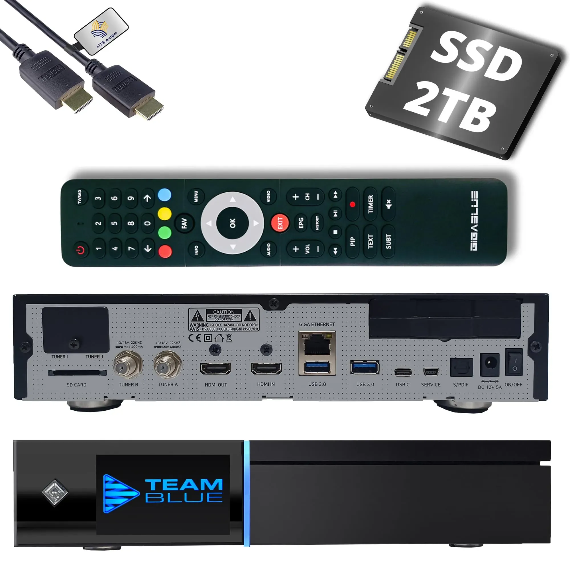 Kategorie: Digitale Sat-Receiver - hts e-com - LEISTUNGSSTARK: Super schnelle Reaktion und Verarbeitung dank ARM CPU, 2 GB RAM, 8 GB Flash, USB3.0 und SATA ideal für Aufnahmen und flüssiges Multitasking. 4K UHD mit HDR 10 für gestochen scharfe Bilder BENUTZERFREUNDLICH: Intuitives Menü in verschiedenen Sprachen z.B. in Deutsch, Englisch, Russisch, Türkisch. Erweitertes EPG mit HbbTV und Mediatheken für die volle Informationsvielfalt. Die Skin-Auswahl individualisiert dein Gerät. VIELSEITIG: Auf Grund von 3x USB 3.0, USB-C, Gigabit-LAN, 3'LCD-Farbdisplay, HDMI IN/OUT, E2 Linux OS, 1 Gbit/s WLAN, Bluetooth 5.4, 2xCI-Modul sind Anschlussmöglichkeiten für verschiedenste Geräte gegeben ZEITLOS: Der Plug&Play HDD Schacht bietet die Möglichkeiten Festplatten nachzurüsten um durch Time-Shift und Aufnahmen flexibel zu sein. Die Timer-Funktion macht es möglich Serienaufnahmen zu erstellen. Verpasse nie mehr deine Lieblingssendung. LIEFERUMFANG: 1x GigaBlue UHD Quad 4K Pro + 1TB SSD, 1x HTS e-com HDMI-Kabel, 1x 12V Netzteil, 1x BT Fernbedienung - 409,99 Euro bei Amazon Marketplace CE - gefunden von billiger.de Für 449.9 Euro erhalten Sie hier den Receiver mit 2TB SSD und HDMI-Kabel, was ein umfassendes Paket für anspruchsvolle Nutzer ist. ![]() ![]() GigaBlue UHD Quad 4K Pro 2X FBC DVB-S2 Twin Sat Receiver mit Dual Core CPU, E2 Linux OS, 4GB RAM, 8GB eMMC, Bluetooth 5.4, H.265, 1200Mbit WLAN, 3X USB 3.0, HTS e-com HDMI-Kabel + 2TB SSD