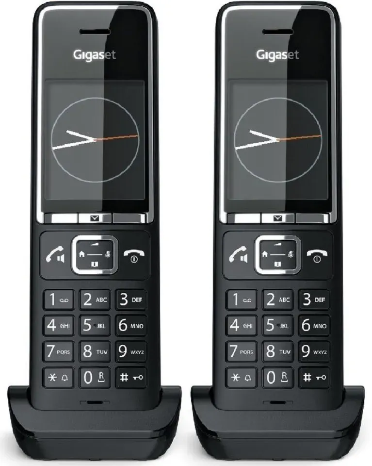 Kategorie: Mobilteile - Gigaset - GTIN:4255781906591 - Komfortable Kommunikation am Router Das Ergänzungsmobilteil Gigaset COMFORT 550HX für Router und Telefone ist so einfach und angenehm zu bedienen wie man es sich wünscht. Zur bekannt hohen Qualität der in Deutschland hergestellten Gigaset-Telefone kommt bei Gigaset COMFORT 550HX ein besonderer Schutz vor unerwünschten Anrufen durch eine 100 Einträge umfassende Sperrliste und weitere Schutzmöglichkeiten. Gigaset COMFORT 550HX ist kompatibel mit FRITZ!Box-Modellen, Speedport-Routern der Deutschen Telekom und generell allen Routern, welche die Telefon-Standards DECT, GAP, CAT-iq 2.0/2.1 unterstützen. Welche Funktionen im Zusammenspiel mit Ihrem Routermodell zu Verfügung stehen können Sie auf www.gigaset.com/kompatibilitaet überprüfen. Die Anmeldung am Router ist ganz einfach, weil das COMFORT 550HX per Werkseinstellung in Anmeldebereitschaft geht, sobald Akkus eingelegt werden, bzw. das Mobilteil geladen wird. Sie brauchen dann nur noch innerhalb von 60 Sekunden eine connect/WPS-Taste (Beispiel) am Router drücken. Die Navigation erfolgt ganz intuitiv über ein großes, kontrastreiches TFT-Farbdisplay, dessen Hintergrundfarbe man von Schwarz auf Weiss umstellen kann. Eine ergonomisch perfekte, beleuchtete Tastatur, Hörgerätekompatibilität (HAC), ein Kalender, ein Wecker, die Babyphonefunktion für Anrufe an externe Rufnummern oder ein internes Mobilteil, extragroße Ziffern beim Wählen. Das alles macht das COMFORT 550HX zum ... Das Duo-Set von expert TechnoMarkt ist eine gute Option für zwei Mobilteile mit einem zuverlässigen Händler. ![]() ![]() Gigaset Comfort 550HX Duo Analoges/DECT-Telefon (Schwarz)