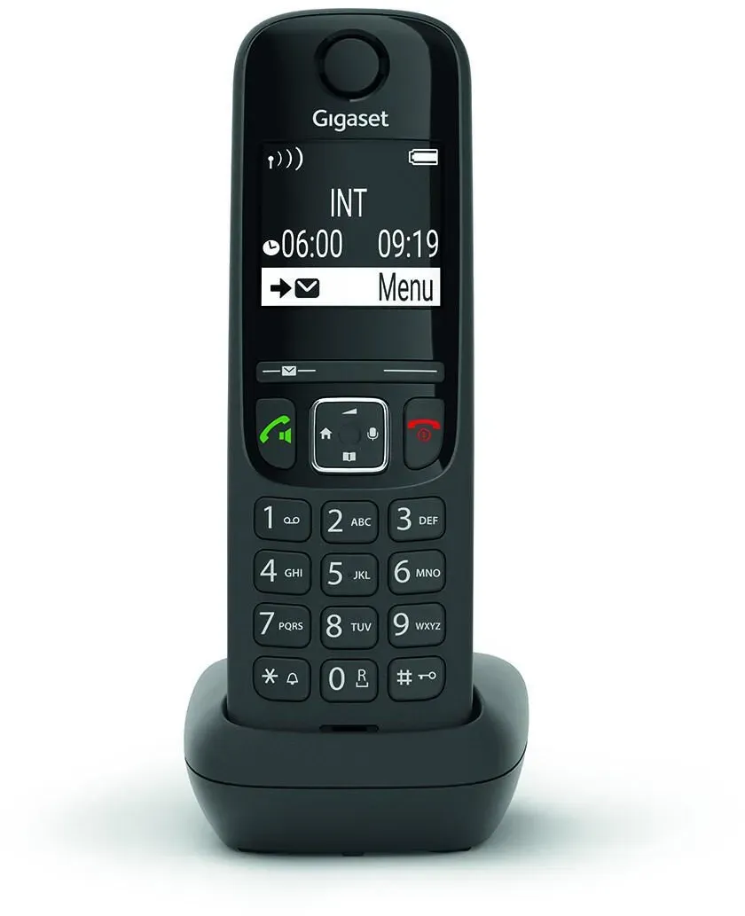 8 Händlerangebote bei billiger.de - Kategorie: Schnurlose Telefone - Gigaset - Telefonieren wird digital: Fast alle Anschlüsse sind mittlerweile IP-basiert, sodass die meisten Menschen bereits heute über das Internet telefonieren. Dies bietet viele Vorteile, wie zum Beispiel eine hervorragende HD-Klangqualität, die Möglichkeit, sich mit drei Telefonnummern gleichzeitig zu verbinden und mehrere Gespräche gleichzeitig zu führen. All diese Funktionen können Sie mit den universellen Gigaset HX-Schnurlosmobilteilen geniessen. Da sie mit allen DECT/CAT-iq-fähigen Routern wie FRITZ!Box oder Telekom Speedport kompatibel sind, sind sie unglaublich vielseitig €“ sodass Sie sie auch bei einem Routerwechsel weiter nutzen können. - GTIN:4250366857190 Dieses Angebot bietet das Gigaset AS690HX mit Anrufbeantworter zu einem sehr wettbewerbsfähigen Preis. ![]() Gigaset AS690HX Schnurlostelefon mit Anrufbeantworter schwarz