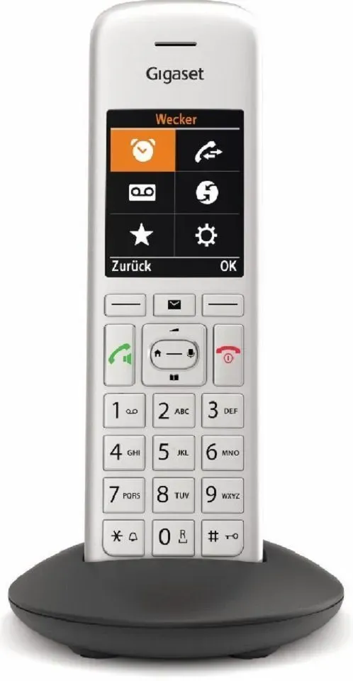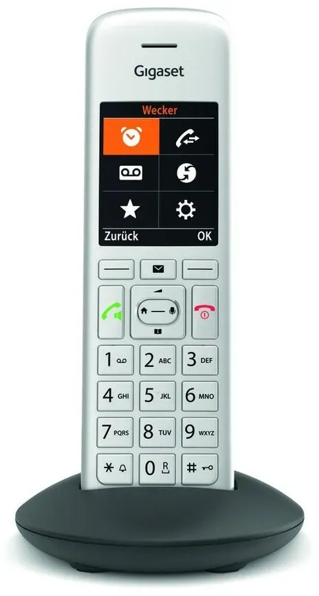 Zustand: Neu - Schnurlose Festnetztelefone - Gigaset Gigaset Technologies GmbH - Gigaset CE575HX - EAN: 4250366861487 - KOMFORT BIS INS DETAIL - Dank großem und kontrastreichem Farbdisplay bietet Ihnen das Gigaset C570HX beste Lesbarkeit von Grafik und Schrift - der Jumbo Modus lässt Zahlen extra groß anzeigen ÜBERZEUGENDE FUNKTIONEN - Große Bedienfreundlichkeit dank moderner Benutzeroberfläche - Adressbuch für 200 Kontakte - unbekannte Anrufe unterdrücken mit der Funktion 'Ruhe vor anonymen Anrufen VIELFÄLTIGE ANSCHLUSSMÖGLICHKEITEN - Verbindung mit separat erhältlichen oder bereits vorhandenen gängigen Routern mit DECT/CAT-iq Funktionalität, zb AVM FRITZ!Box, Speedport oder als Erweiterung Ihres Systems mit einer Gigaset DECT-Basis QUALITÄT MADE IN GERMANY - Design und Herstellung in Deutschland - die umweltfreundliche ECO DECT Technologie sorgt für einen reduzierten Energieverbrauch LIEFERUMFANG - 1x Gigaset C570HX Mobilteil, 1x Ladeschale, 1x Steckernetzteil, 2x AAA Akkus (NiMH), 1x Bedienungsanleitung Sie haben Fragen zu diesem Produkt? Kontaktieren Sie den Gigaset Kundenservice unter 02871-912 912 (zum Festnetztarif Ihres Anbieters) - 21 Händler im amazon.de Marketplace Ein preislich attraktives Angebot von Kaufland.de für das silberne Schnurlostelefon. ![]() ![]() Gigaset CE575HX silber Schnurloses Telefon - Silber