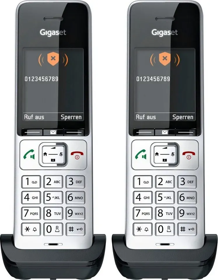 32 Händlerangebote bei billiger.de - Kategorie: Mobilteile - Gigaset - Mit dem COMFORT 500HX duo präsentiert Gigaset den neuen Maßstab für die schnurlose Telefonie Zuhause und im Home Office. Das zeitlos-edle Design macht sowohl auf dem Schreibtisch als auch im ganzen Haus eine gute Figur. Anrufe und Telefonkonferenzen in HD-Qualität Im beruflichen Einsatz überzeugt das Gigaset COMFORT 500HX duo mit einem professionellen Headset-Anschluss sowie einer integrierten Freisprecheinrichtung in HD-Qualität: So bleiben die Hände frei für gute Gespräche und direkte Mitschriften. Exzellente Sprachqualität ist zudem bei klassischen Telefonaten sichergestellt. Ein nachhaltiges Design für alle Generationen Die neue Gigaset Generation bereitet durch hochwertige Materialien und einfache Bedienung nachhaltig Freude. Und das sogar generationsübergreifend: Durch optimale Lesbarkeit des Displays und Hörgeräte-Kompatibilität ist Freude an Kommunikation keine Frage des Alters mehr. Komfort-Anrufschutz blockt unerwünschte Nummern Unerwünschte Anrufe sind eine Herausforderung in jeder Lebensphase: Hier hat Gigaset mit dem Komfort-Anrufschutz eine neue Funktion entwickelt, die vor störenden Werbeanrufen schützt. Eine lokale, individuelle Sperrung ist für bis zu 100 Rufnummern möglich. Sollte diese Anzahl einmal erreicht werden, wird automatisch die älteste gesperrte Rufnummer ersetzt. Innovative Technologien, Made In Germany Das Gigaset COMFORT 500HX duo - GTIN:4250366866079 Ein Duo-Set zu einem guten Preis, das zwei Mobilteile für größere Haushalte oder Büros bietet. ![]() ![]() Gigaset COMFORT 500HX duo Schnurloses DECT-Telefon (Mobilteile: 2) silberfarben