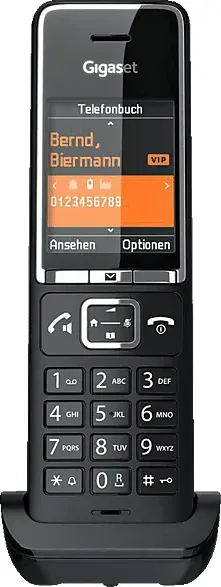 Verfügbarkeit: 1-3 Werktage - Kategorie: Mobilteile - Gigaset - GTIN:4255781906577 - Komfortable Kommunikation am Router Das Ergänzungsmobilteil Gigaset COMFORT 550HX für Router und Telefone ist so einfach und angenehm zu bedienen wie man es sich wünscht. Zur bekannt hohen Qualität der in Deutschland hergestellten Gigaset-Telefone kommt bei Gigaset COMFORT 550HX ein besonderer Schutz vor unerwünschten Anrufen durch eine 100 Einträge umfassende Sperrliste und weitere Schutzmöglichkeiten. Gigaset COMFORT 550HX ist kompatibel mit FRITZ!Box-Modellen, Speedport-Routern der Deutschen Telekom und generell allen Routern, welche die Telefon-Standards DECT, GAP, CAT-iq 2.0/2.1 unterstützen. Welche Funktionen im Zusammenspiel mit Ihrem Routermodell zu Verfügung stehen können Sie auf www.gigaset.com/kompatibilitaet überprüfen. Die Anmeldung am Router ist ganz einfach, weil das COMFORT 550HX per Werkseinstellung in Anmeldebereitschaft geht, sobald Akkus eingelegt werden, bzw. das Mobilteil geladen wird. Sie brauchen dann nur noch innerhalb von 60 Sekunden eine connect/WPS-Taste (Beispiel) am Router drücken. Die Navigation erfolgt ganz intuitiv über ein großes, kontrastreiches TFT-Farbdisplay, dessen Hintergrundfarbe man von Schwarz auf Weiss umstellen kann. Eine ergonomisch perfekte, beleuchtete Tastatur, Hörgerätekompatibilität (HAC), ein Kalender, ein Wecker, die Babyphonefunktion für Anrufe an externe Rufnummern oder ein internes Mobilteil, extragroße Ziffern ... Dieses Mobilteil für 64.99 Euro ist ein gutes Angebot für die schwarz/chrom-Variante. ![]() ![]() Gigaset Comfort 550HX schwarz/chrom