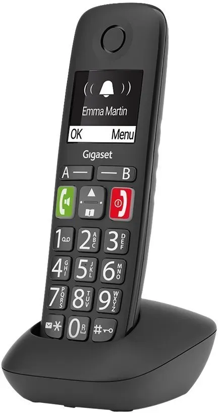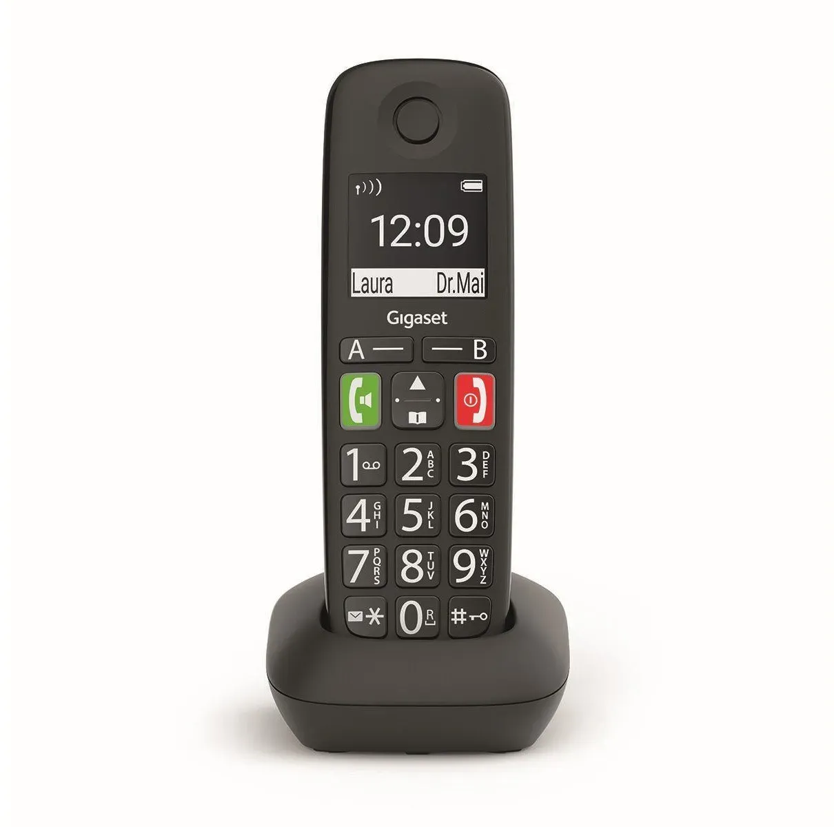 EAN: 4250366856223 - Entdecken Sie Kommunikation auf höchstem Niveau mit dem Gigaset E290HX, dem schnurlosen DECT-Telefon, das neue Maßstäbe in Qualität und Funktionalität setzt. Dieses schlanke und elegante schwarze Gerät ist die ideale Wahl für alle, die ein hervorragendes Telefonie-Erlebnis suchen, ob zu Hause oder im Büro.Das Gigaset E290HX zeichnet sich durch sein 2-Zoll-Display aus, das Informationen klar und deutlich anzeigt. Mit der Anrufer-ID-Funktion wissen Sie immer, wer Sie anruft und haben so die volle Kontrolle über Ihre Kommunikation.Kristallklarer Klang: Genießen Sie klare, störungsfreie GesprächeErweiterte Reichweite: Bewegen Sie sich frei in Ihrem Haus oder Büro, ohne die Verbindung zu verlierenGroßes Adressbuch: Speichern Sie bis zu 150 Kontakte, damit Sie Ihre Nummern immer zur Hand habenLange Akkulaufzeit: Bis zu 200 Stunden Standby-Zeit und 18 Stunden GesprächszeitIntegrierte Freisprecheinrichtung: Für qualitativ hochwertige FreisprechanrufeModernste DECT-Technologie sorgt für eine stabile und sichere Verbindung, während das ergonomische Design das Gigaset E290HX auch bei langen Gesprächen angenehm in der Hand hält. Die beleuchtete Tastatur erleichtert die Nutzung bei schlechten Lichtverhältnissen und macht dieses Schnurlostelefon perfekt für jede Umgebung und Situation.Technikbegeisterte werden fortschrittliche Funktionen wie den ECO-Modus zu schätzen wissen, der den Stromverbrauch senkt, und die Möglichkeit, das System auf bis zu 6 Mobilteile zu ... Dieses Angebot ist eine gute Wahl für ein Großtastentelefon, das speziell für Senioren oder Menschen mit Sehschwäche geeignet ist. ![]() ![]()