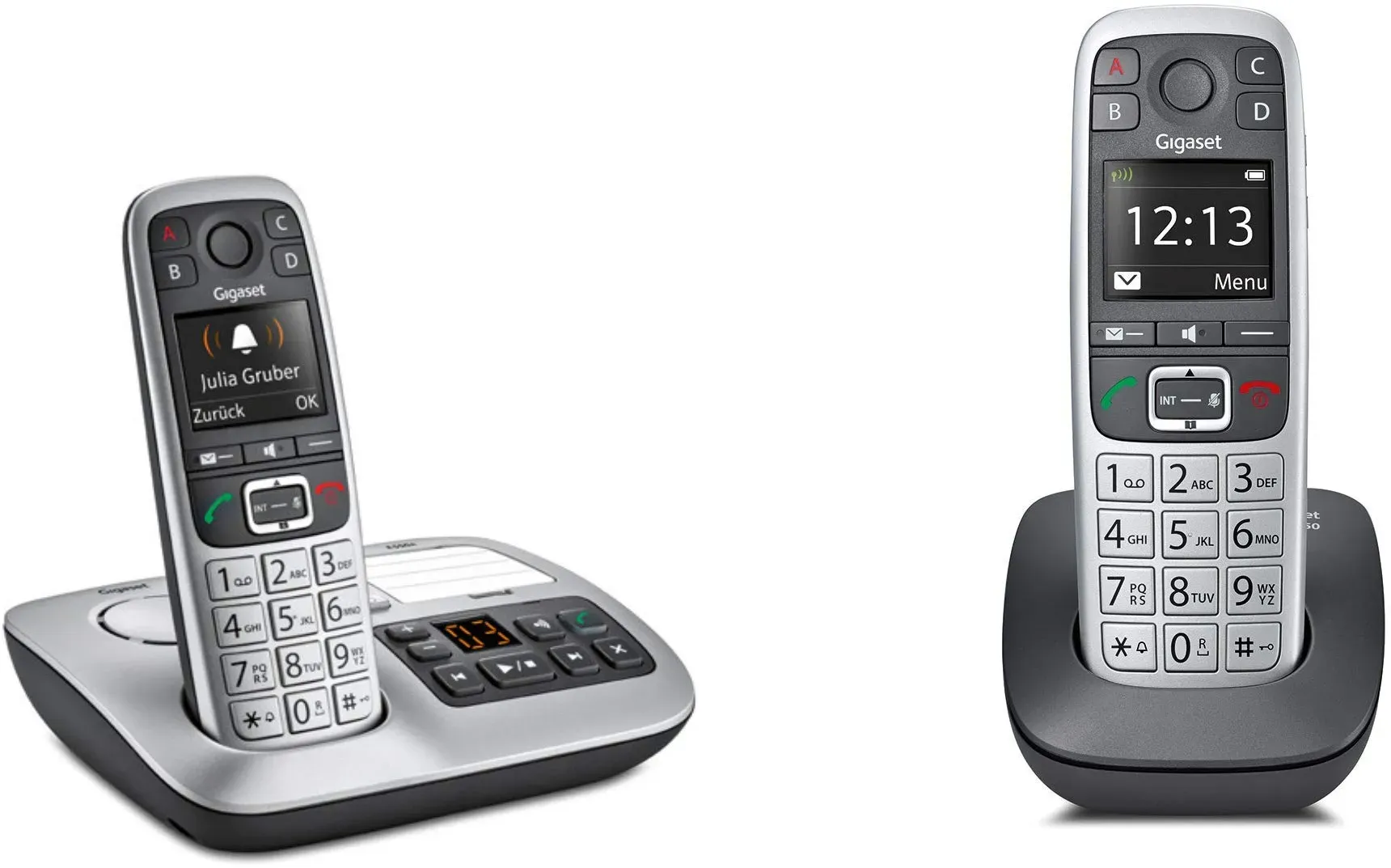 keine Angabe (Amazon Prime) Auf Lager Versand durch AmazonGigaset E560A & E560HX - 2 DECT-Mobilteile mit Anrufbeantworter - Schnurloses Senioren-Telefon - Notruf mit 4 Nummern - Extralaut-Taste - Tastenfeld mit extragroßen Tasten, Silber