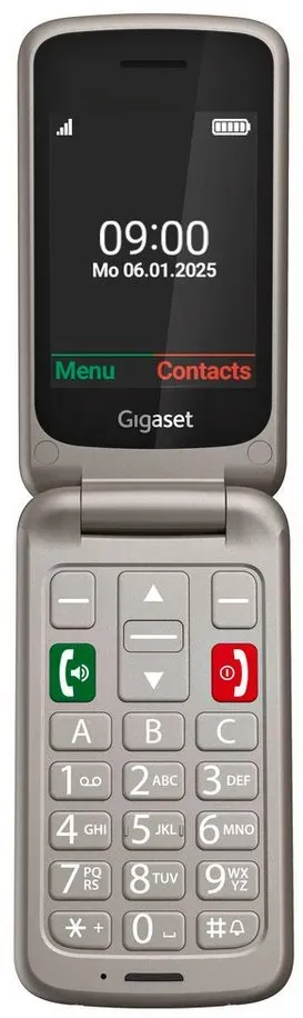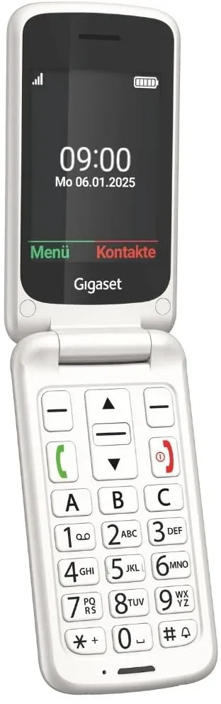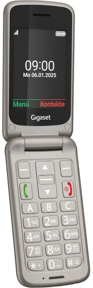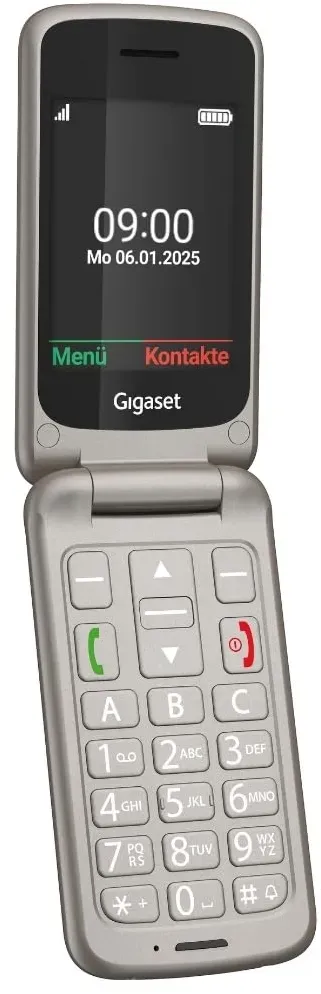Kategorie: Handys ohne Vertrag - Gigaset - GTIN:4255781906157 - OPTIMIERT FüR SENIOREN - Speziell verbesserte Benutzeroberfläche für Senioren mit großen Tasten & Schrift, großes 2,8-Zoll-TFT-Farbdisplay für klare Lesbarkeit & einfache Navigation FüR MAXIMALE SICHERHEIT - SOS-Notruftaste für schnelle Hilfe in Notfällen, staub- & spritzwassergeschützt nach IP44. Einfaches Aufladen mit Ladestation & USB-C-Kabel FüR MEHR VERTRAUEN - mit drei Direktwahl-Tasten, Vertrauensliste für den Kontakt mit Freunden & Familie und Blockierungsliste, um unerwünschte Rufnummern zu sperren GIGASET STANDARD - Gigaset Hersteller mit Reparaturservice auf Bruch- & Feuchtigkeitsschäden. Mit umweltfreundlicher, kunststofffreier Verpackung für nachhaltigen Konsum LIEFERUMFANG - 1x Gigaset GL595, 1x Ladestation, 1x Steckernetzteil (1m), 1x Akku, 1x Kurzbedienungsanleitung Sie haben Fragen zu diesem Produkt? Kontaktieren Sie den Gigaset Kundenservice unter 02871-912 912 (zum Festnetztarif Ihres Anbieters) - 39,99 Euro bei Amazon Marketplace CE - gefunden von billiger.de Dieses Angebot von Amazon Marketplace CE hebt die Seniorenfreundlichkeit und den IP44-Schutz hervor. ![]() ![]() Gigaset GL595 Flip-Mobiltelefon einfache Bedienung für Senioren, große Tasten & SOS-Notruftaste Staub- & spritzwassergeschützt IP44 Schutzklasse ohne Vertrag 2,8 Zoll TFT-Farbdisplay, Titanium