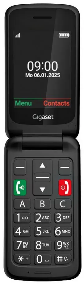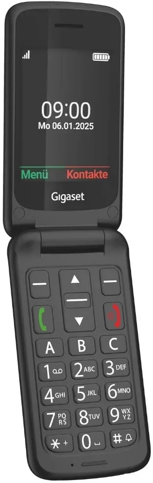 Kategorie: Handys ohne Vertrag - Gigaset - GTIN:4255781906171 - OPTIMIERT FüR SENIOREN - Speziell verbesserte Benutzeroberfläche für Senioren mit großen Tasten & Schrift, großes 2,8-Zoll-TFT-Farbdisplay für klare Lesbarkeit & einfache Navigation FüR MAXIMALE SICHERHEIT - SOS-Notruftaste für schnelle Hilfe in Notfällen, staub- & spritzwassergeschützt nach IP44. Einfaches Aufladen mit Ladestation & USB-C-Kabel FüR MEHR VERTRAUEN - mit drei Direktwahl-Tasten, Vertrauensliste für den Kontakt mit Freunden & Familie und Blockierungsliste, um unerwünschte Rufnummern zu sperren GIGASET STANDARD - Gigaset Hersteller mit Reparaturservice auf Bruch- & Feuchtigkeitsschäden. Mit umweltfreundlicher, kunststofffreier Verpackung für nachhaltigen Konsum LIEFERUMFANG - 1x Gigaset GL595, 1x Ladestation, 1x Steckernetzteil (1m), 1x Akku, 1x Kurzbedienungsanleitung Sie haben Fragen zu diesem Produkt? Kontaktieren Sie den Gigaset Kundenservice unter 02871-912 912 (zum Festnetztarif Ihres Anbieters) - 39,99 Euro bei Amazon Marketplace CE - gefunden von billiger.de Ein weiteres gutes Angebot von Amazon Marketplace CE in Schwarz, das die Hauptmerkmale betont. ![]() ![]() Gigaset GL595 Flip-Mobiltelefon einfache Bedienung für Senioren, große Tasten & SOS-Notruftaste Staub- & spritzwassergeschützt IP44 Schutzklasse ohne Vertrag 2,8 Zoll TFT-Farbdisplay, Black