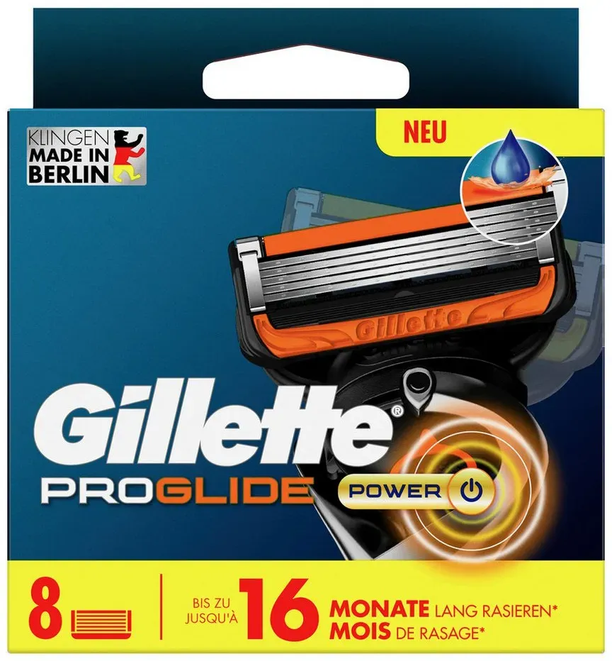Zustand: Neu - Rasierer Rasierer für Herren - Gillette Procter & Gamble - 8001090420831 - EAN: 8001090420831 - Eine glattere, langanhaltende Rasur (im Vergleich zu Mach3): Gillette Fusion5 Rasierer für Männer mit 5 Anti-Irritations-Klingen 1 Ersatzklinge = 20 Rasuren: Mit jeder Gillette Fusion5 Ersatzklinge können Sie sich bis zu 20 Mal gründlich rasieren Speziell angeordneter, größerer Gleitstreifen für sanftes Gleiten (im Vergleich zum bisherigen Fusion5) Optimierter Griff für eine komfortable Rasur Präzisionstrimmer: Für eine gründliche Rasur mit der Präzisionstrimmer-Klinge auf der Rückseite - bei Amazon.de Ein sehr preiswertes Angebot für 8 ProGlide Power Rasierklingen, ideal für Nutzer, die die Power-Variante bevorzugen. ![]() ![]() Gillette Rasierklingen Fusion ProGlide Power 8 St.