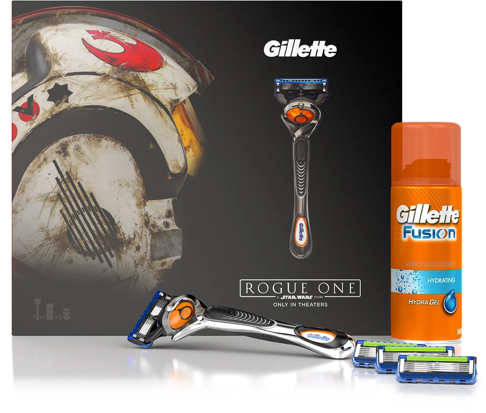 Kategorie: Systemrasierer - Gillette - GTIN:7702018471119 - Gillette Rasierer mit 5 Klingen mit Gleitbeschichtung für eine kaum spürbare Rasur Präzisionstrimmer an der Rückseite ideal zum Rasieren an schwierigen Stellen (an der Nase und Koteletten) Mit Feuchtigkeitsstreifen, der verblasst, wenn Sie kein optimales Rasierergebnis mehr erhalten 1 Ersatzklinge entspricht bis zu einem Monat Rasur Alle Fusion5 Ersatzklingen können mit allen Fusion5 Griffen verwendet werden (ehemals Fusion) - 29,92 Euro bei Amazon Marketplace Health & Personal Care - gefunden von billiger.de Ein spezielles Star Wars Rogue One Set, das Sammler und Fans ansprechen dürfte. ![]() ![]() Gillette Gillete Fusion Proglide Star Wars Rogue One Set 5 Piezas