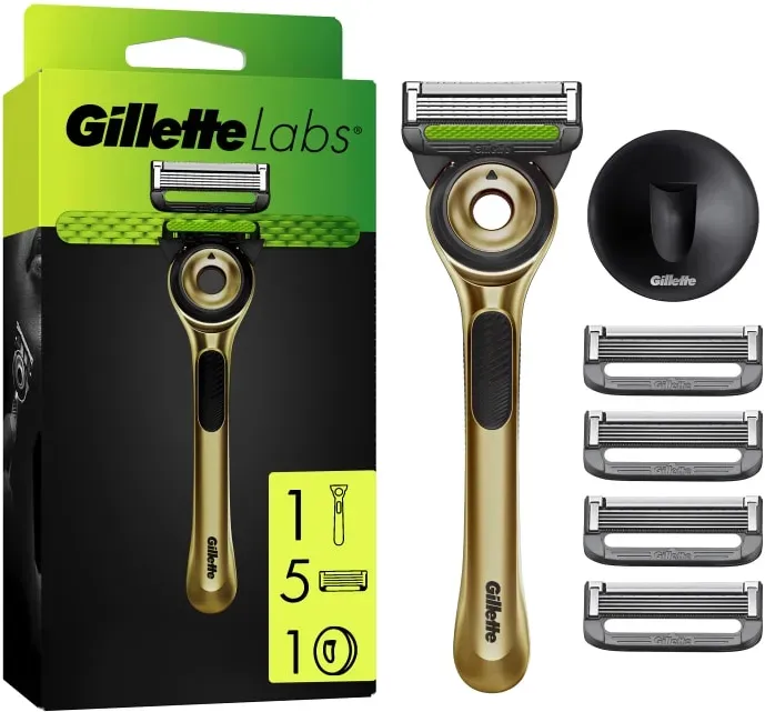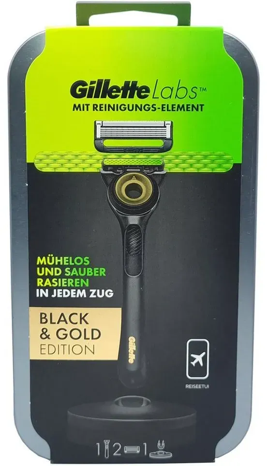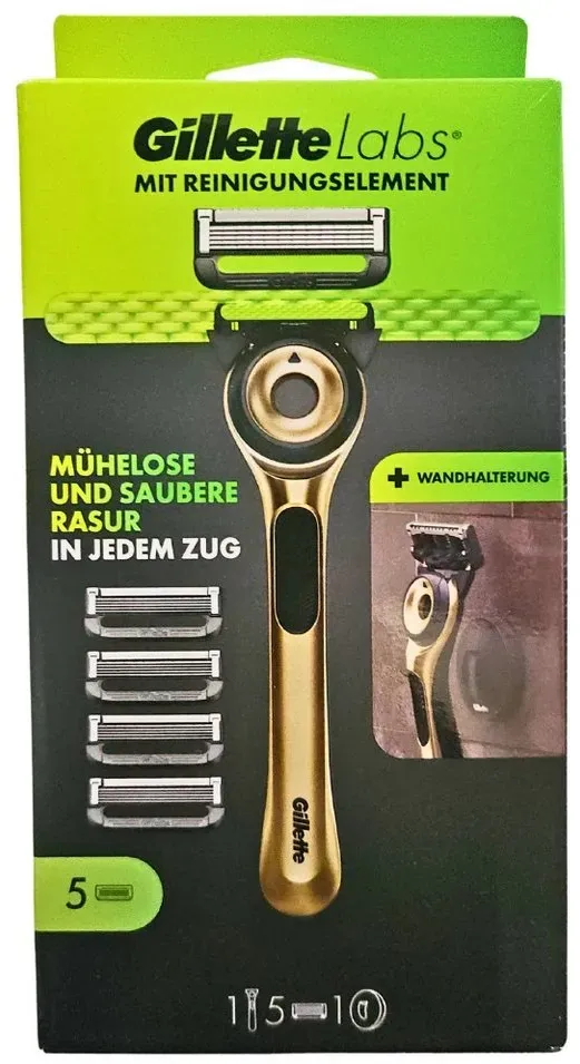 Zustand: Neu - Rasierer Rasierer für Herren - Gillette Procter & Gamble - 8006530032414 - EAN: 8006530032414 - GILLETTE LABS HERRENRASIERER: Für unschlagbare Glätte in jedem Zug REINIGUNGSELEMENT: befreit eingewachsene Haare für eine glatte Rasur UNSCHLAGBARES RASURERLEBNIS: Dank 5 der besten Klingen von Gillette (Klingen sind auch bei anderen Gillette-Produkten erhältlich) und EVERGLIDE Gleitstreifen für Geschmeidigkeit für unglaublichen Hautkomfort MIT 2D-FLEXDISC: passt sich den Gesichtskonturen an GILLETTE LABS RASIERER MIT REINIGUNGSELEMENT: Enthält Ersatzklinge und Wandhalterung - bei Amazon.de Die Black & Gold Edition mit Reiseetui ist ideal für stilbewusste Reisende. ![]() ![]() Gillette Nassrasierer Labs, 1-tlg., mit 2 Klingen und Reiseetui Black & Gold Edition