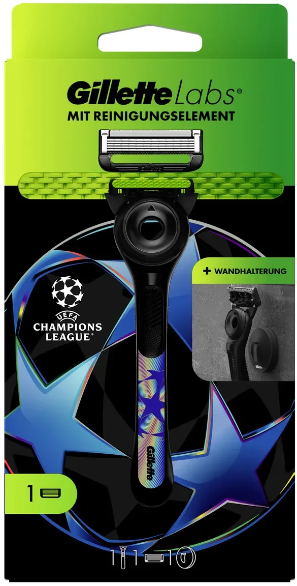 Verfügbarkeit: 2-3 Tage - Kategorie: Systemrasierer - Procter & Gamble - GTIN:8700216942515 - Gillette Rasierer Labs 'UEFA Champions League' - 16,99 Euro bei mueller.de - gefunden von billiger.de Ein günstiger Nassrasierer mit Reinigungs-Element, der eine effektive Rasur zu einem attraktiven Preis bietet. ![]() ![]() Gillette Labs Nassrasierer Herren mit Reinigungs-Element