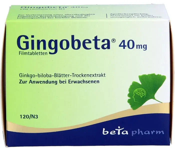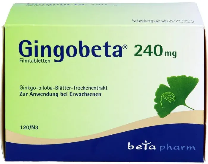 Zustand: Neu - 0,26 € / stück - Ginkgo Pflanzliches Ergänzungsmittel Ginkgo - betapharm Arzneimittel GmbH - 12461686 - EAN: 4150124616864 - PZN-12461686 120 St Filmtabletten apothekenpflichtig Zu Risiken und Nebenwirkungen lesen Sie die Packungsbeilage und fragen Sie Ihre Ärztin, Ihren Arzt oder in Ihrer Apotheke. Dieses Produkt darf nicht an Personen unter dem gesetzlichen Mindestalter abgegeben werden. Dieses Produkt darf nicht an Personen unter dem gesetzlichen Mindestalter abgegeben werden. - 15 Händler im amazon.de Marketplace ![]() ![]() GINGOBETA 120 mg Filmtabletten 120 St