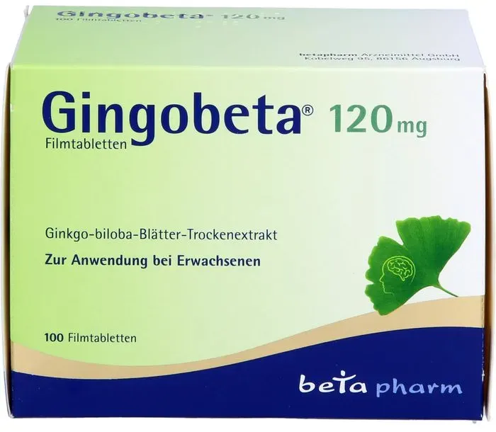 Zustand: Neu - 0,24 € / stück - Ginkgo Pflanzliches Ergänzungsmittel Ginkgo - betapharm Arzneimittel GmbH - - EAN: 4150142597183 - PZN-14259718 100 St Filmtabletten apothekenpflichtig Zu Risiken und Nebenwirkungen lesen Sie die Packungsbeilage und fragen Sie Ihre Ärztin, Ihren Arzt oder in Ihrer Apotheke. Dieses Produkt darf nicht an Personen unter dem gesetzlichen Mindestalter abgegeben werden. - 14 Händler im amazon.de Marketplace ![]() ![]() GINGOBETA 120 mg Filmtabletten 100 St