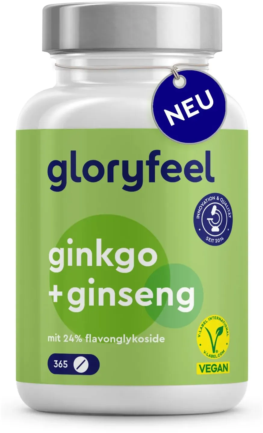 Kategorie: Nahrungsergänzungsmittel - medfuture - GTIN:5905669222709 - Hochdosiert: Jede Tablette enthält 120 mg Ginkgo Biloba Extrakt ideal zur täglichen Einnahme Ohne Zusatzstoffe wie Magnesiumstearat, Laktose oder künstliche Aromen Laborgeprüfte Qualität Sorgfältig hergestellt in EU nach hohen Standards 120 Tabletten 4-Monatsvorrat bei empfohlener Einnahme von 1 Tablette täglich Beliebtes Naturprodukt: ginkgo biloba, ginko kapseln hochdosiert, ginkgo tabletten - 10,90 Euro bei Amazon Marketplace Health & Personal Care - gefunden von billiger.de Gloryfeel bietet eine Kombination aus Ginkgo und Ginseng in einer großen Packung für mentale Performance und Lebensenergie. ![]() ![]() gloryfeel Ginkgo + Ginseng Tabletten - 365 Stück für mentale Performance & Lebensenergie* - je 60 mg Ginkgo biloba Blattextrakt & Panax ginseng Wurzelextrakt pro Tag - optimal dosiert & sorgfältig laborgeprüft