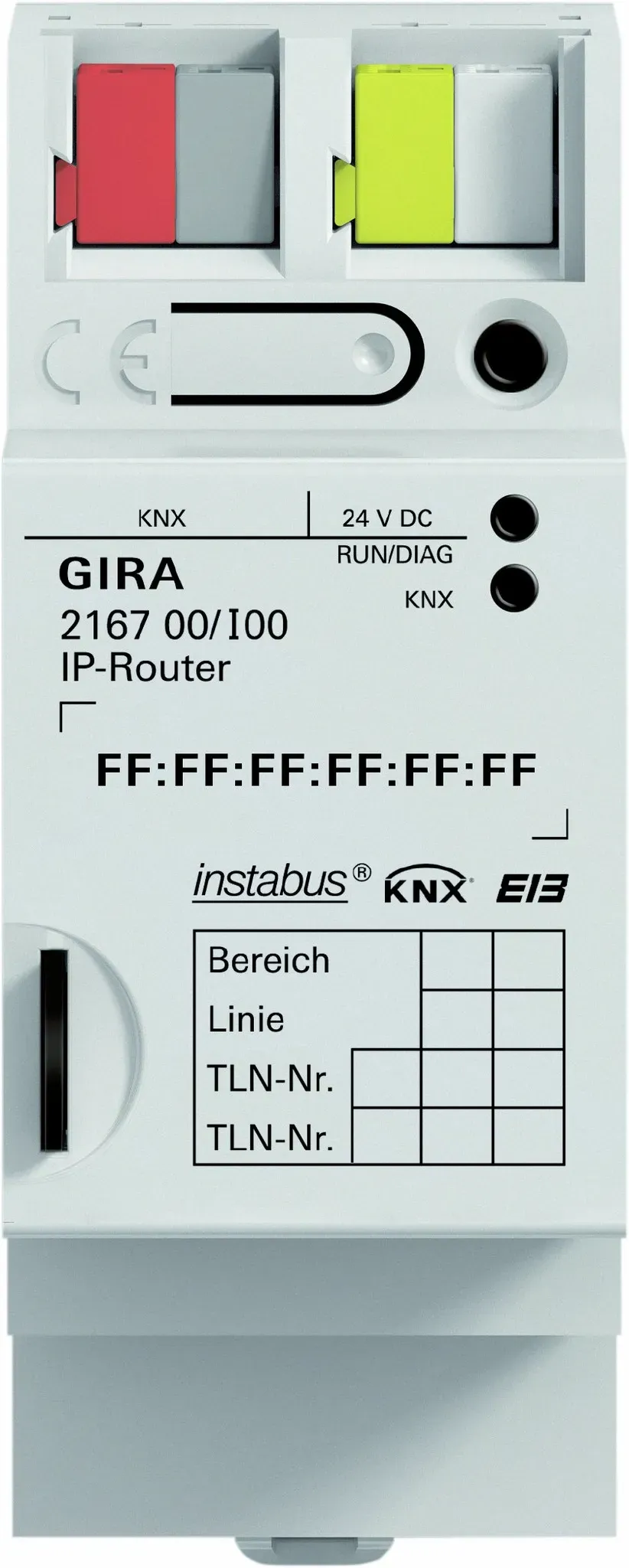 10 Händlerangebote bei billiger.de - Kategorie: Sonstige Elektroinstallationsartikel - Gira - IP-Router für KNX - Verbindung von KNX Linien mit Hilfe von Datennetzwerken unter Nutzung des Internet Protokolls (IP). - Ankopplung an ein KNX System zusammen mit dem Gira HomeServer bzw. Gira FacilityServer. - Filtern und Weiterleiten von Telegrammen. - Einsatz als Linien- oder Bereichskoppler. - Verwendung als KNX Zeitgeber. - Aufzeichnen von KNX Telegrammen auf microSD-Karte. - KNX Data Secure und KNX IP Secure zur sicheren und manipulationsgeschützten Kommunikation im KNX. - Bis zu vier Tunnelingberbindungen gleichzeitig möglich. - Zuverlässige Kommunikation zur automatischen Korrektur von Telegrammverlusten im WLAN (Reliable Communication). Versorgung über externe DC 24 V oder über unverdrosselten Ausgang der Gira Spannungsversorgungen für KNX. Für Firmware-Updates wird der Gira Projekt Assistent (GPA) benötigt. Der GPA ist kostenlos im Gira Downloadbereich verfügbar. microSD-Karte {b}nicht{\b} im Lieferumfang enthalten. - GTIN:4010337084440 ![]() ![]() Gira IP-Router KNX/EIB REG, 216700