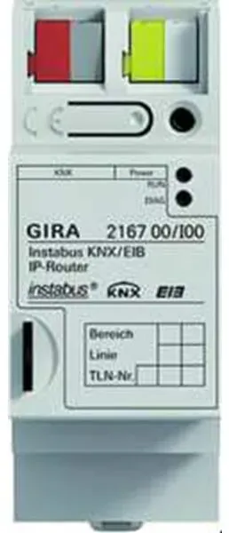 Gira - EAN: 4010337084440 - Gira KNX IP-Router REG 216700 | EIB Schnittstelle | 2x RJ45 | KNXnet/IP | Secure-Ready | 24-30V DC - bei smartgoods.de - aus Yadore Produktdaten ![]() ![]() Gira IP-Router - 216700/I00 Instabus eBay KNX EIB