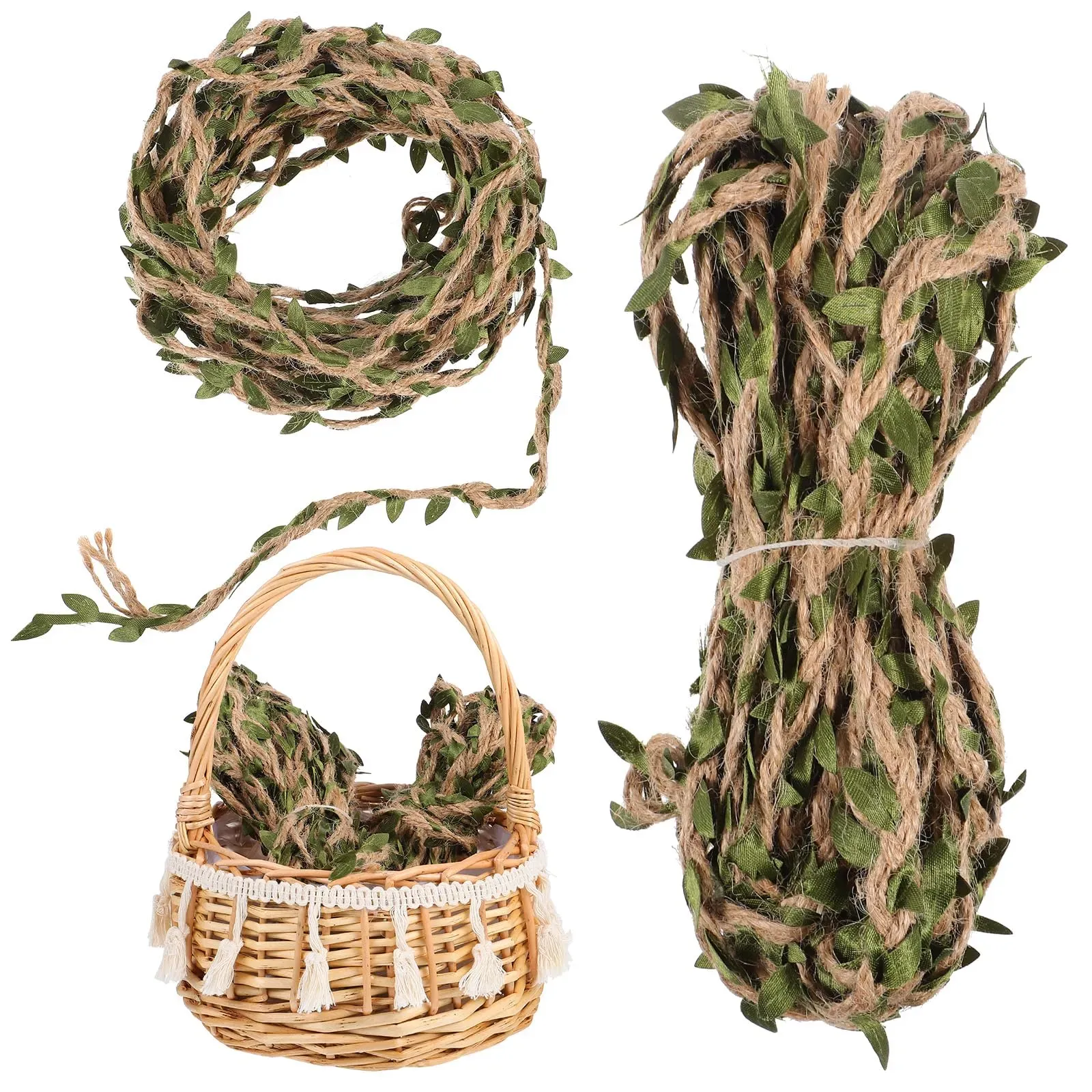 Auf Lager Versand durch AmazonDOPENSPI 20m Künstliche Ranken, Sackleinen-Schnur mit künstlichen Blättern Weinreben Girlande Deko Jute-Schnur Natürliches Grünes Blattseil Hanfseil für DIY Handwerk Floristik Hochzeitsdekoration Haus