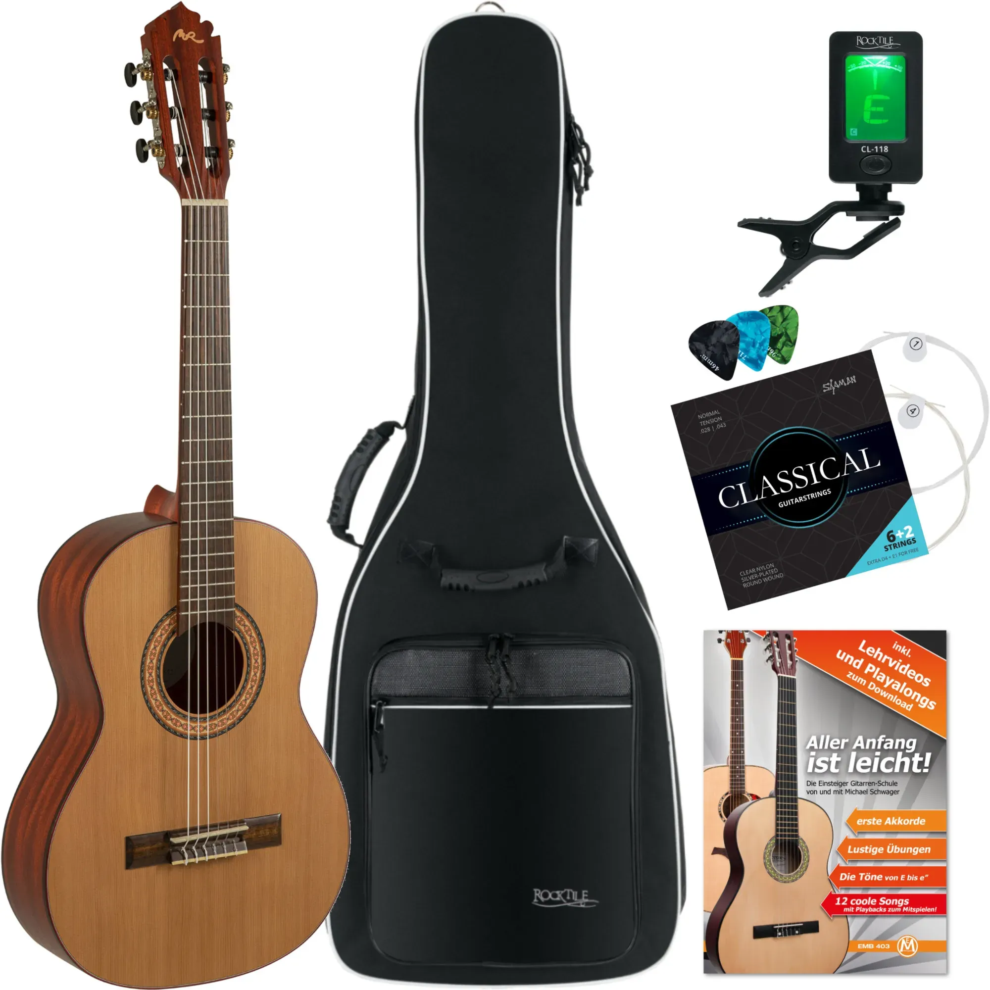Zustand: Neu - Konzertgitarren - Juan Miguel Navarrez GEWA - NV14 - EAN: 4046662224787 - Langjährig bewährt und beliebt: Die Navarrez Konzertgitarre zählt seit vielen Jahren zu unseren Bestsellern - ein zuverlässiges Instrument für Einsteiger, Fortgeschrittene und Bühnenkünstler. Sie ist in den gängigen Größen 4/4, 3/4 und 1/2 erhältlich und damit geeignet für Erwachsene, Jugendliche und Kinder. Klarer Klang dank Lindenholz: Mit einem Korpus und einer Decke aus sorgfältig verarbeitetem Lindenholz überzeugt diese klassische Gitarre durch einen ausgewogenen Klang und robuste Bauweise. Erhältlich in zwei attraktiven Farbvarianten: Honigfarben oder schwarz. Hohe Verarbeitungsqualität: Jede Navarrez Gitarre wird unter strengen Qualitätsstandards gefertigt - für ein präzise abgestimmtes Instrument, das spielbereit und zuverlässig geliefert wird. Hochwertige Lackierung: Die feine, wasserbasierte Lackierung verleiht der Gitarre ein glänzendes Finish und schützt die Oberfläche dauerhaft - ein echter Blickfang in jedem Musikzimmer oder Studio. Flexibles Zubehörangebot: Wählen Sie zwischen der Variante mit leicht gepolsterter Tragetasche (inkl. Rucksackgurten und Notenfach) oder dem umfassenden Starterset mit Tasche, mehrsprachigem Lehrbuch samt CD, Stimmgerät und Plektren - für den schnellen Einstieg. - bei Amazon.de Die Pyle Gitarre ist ein preiswertes Set für Anfänger, das bereits Zubehör wie Stimmgerät und Gigbag enthält. ![]() ![]()